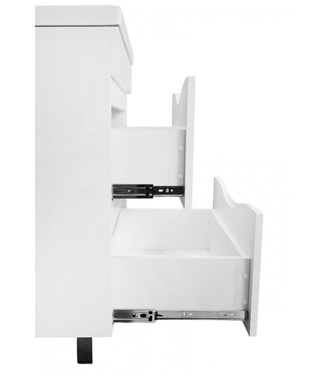 Ручки выдвижных ящиков интегрированы в фасад , что исключает возможность случайного удара о фурнитуру.