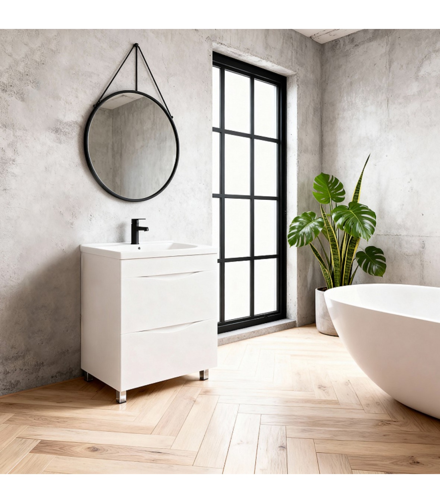 Тумба Loranto Santorini в минималистичном стиле в цвете белый глянец несомненно украсит современный интерьер ванной комнаты.