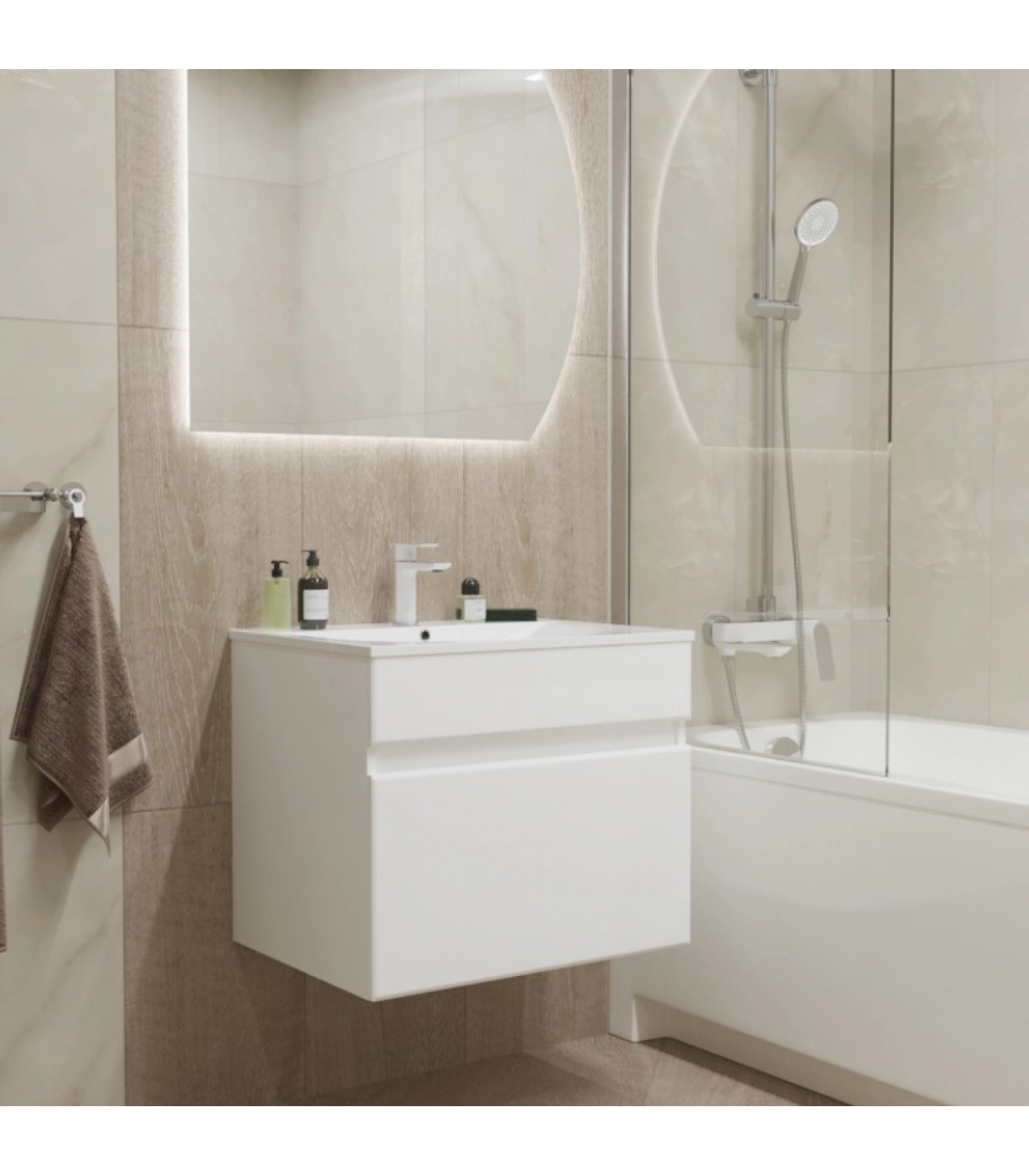 Комплект Тумба Mixline Брикс 60 белая подвесная с раковиной Sanita Luxe Breeze 60