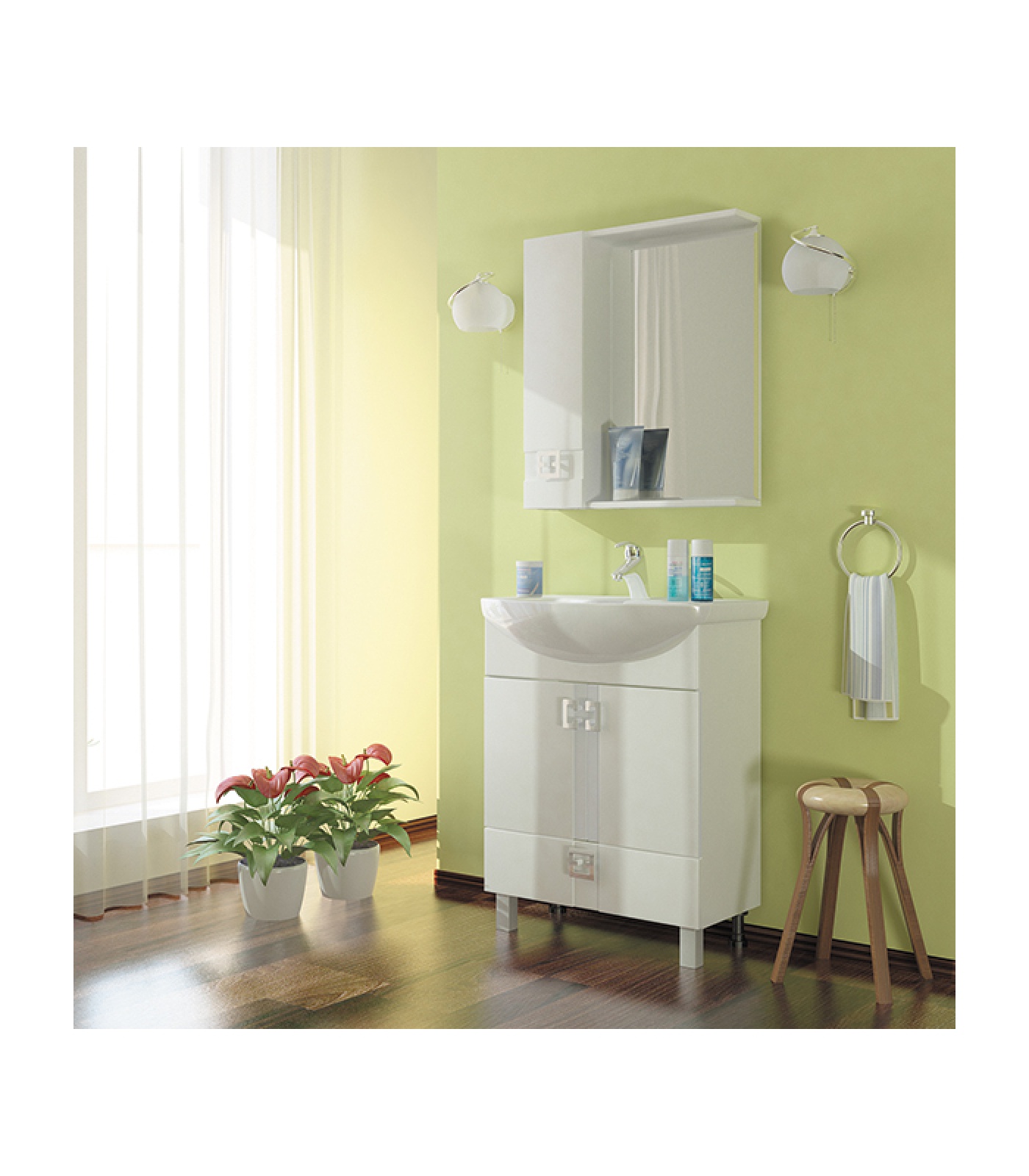 Коллекция -65 создана специально для любителей классического дизайна. Правильные геометрические формы тумбы зрительно вытянут пространство ванной комнаты, а оригинальная современная фурнитура на мебели освежит весь интерьер помещения. Покрытие фасада пленкой ПВХ делает мебель практичной, более устойчивой к механическим повреждениям и неприхотливой в уборке.