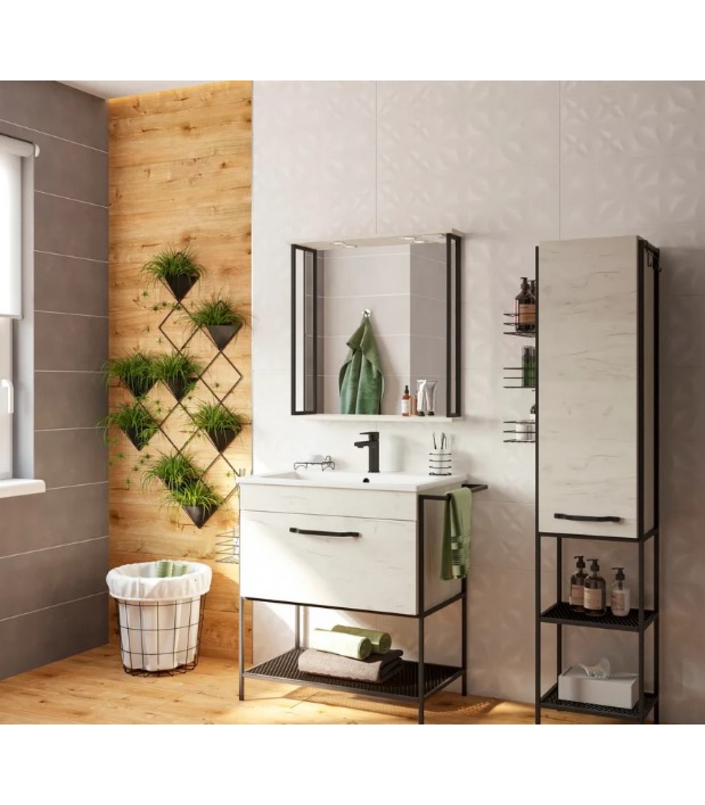 Зеркало из коллекции Bruklin- 75 в черной металлической оправе обладает особым шармом и элегантностью. Строгие линии и утонченные формы создают впечатление изысканности и стиля. На открытой полочку можно разместить свои любимые косметические средства, парфюмерию или даже аксессуары для волос.
