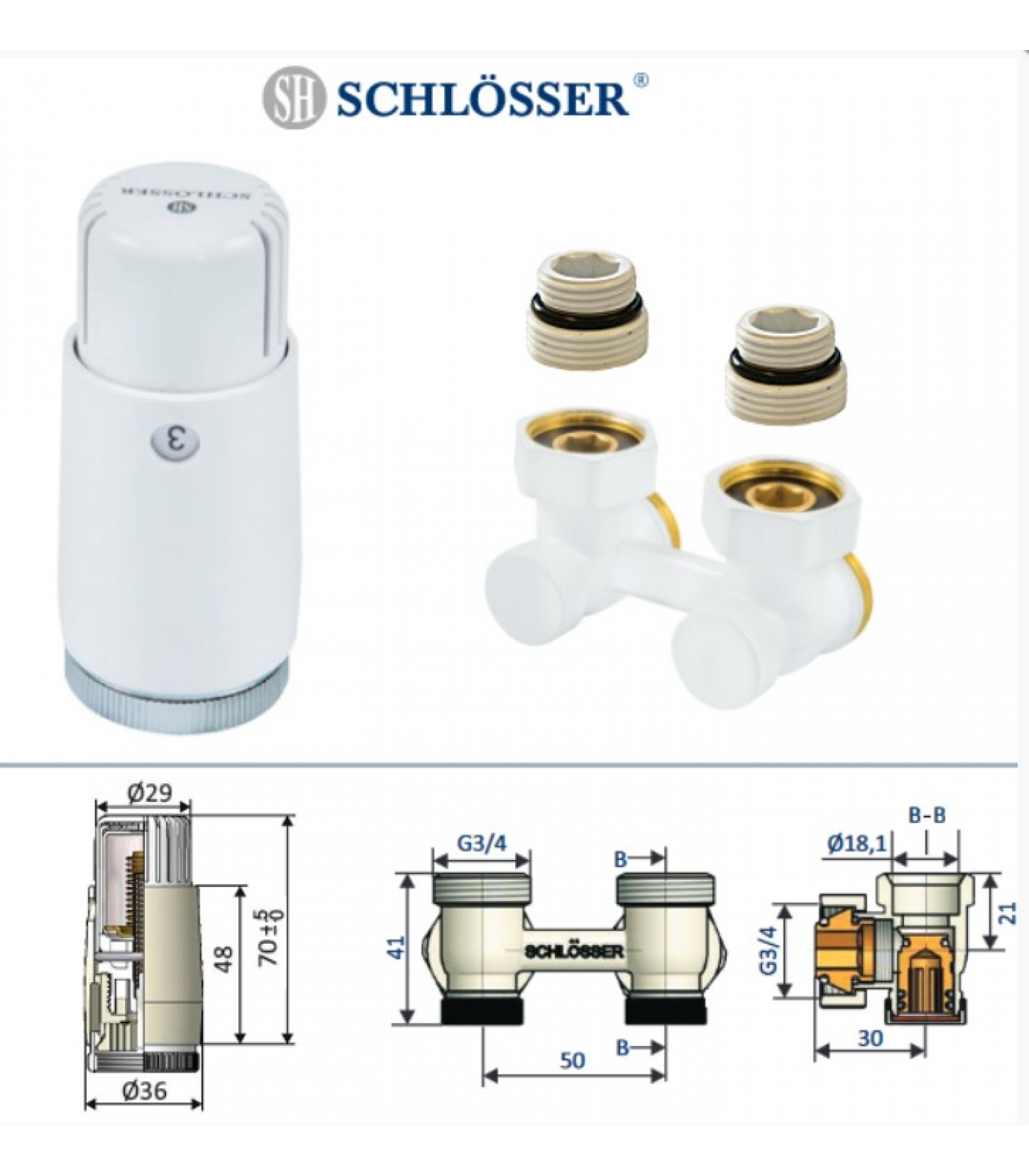 Комплект Schlösser Standard белый Узел нижнего подключения угловой 3/4", термоголовка, 2 ниппеля