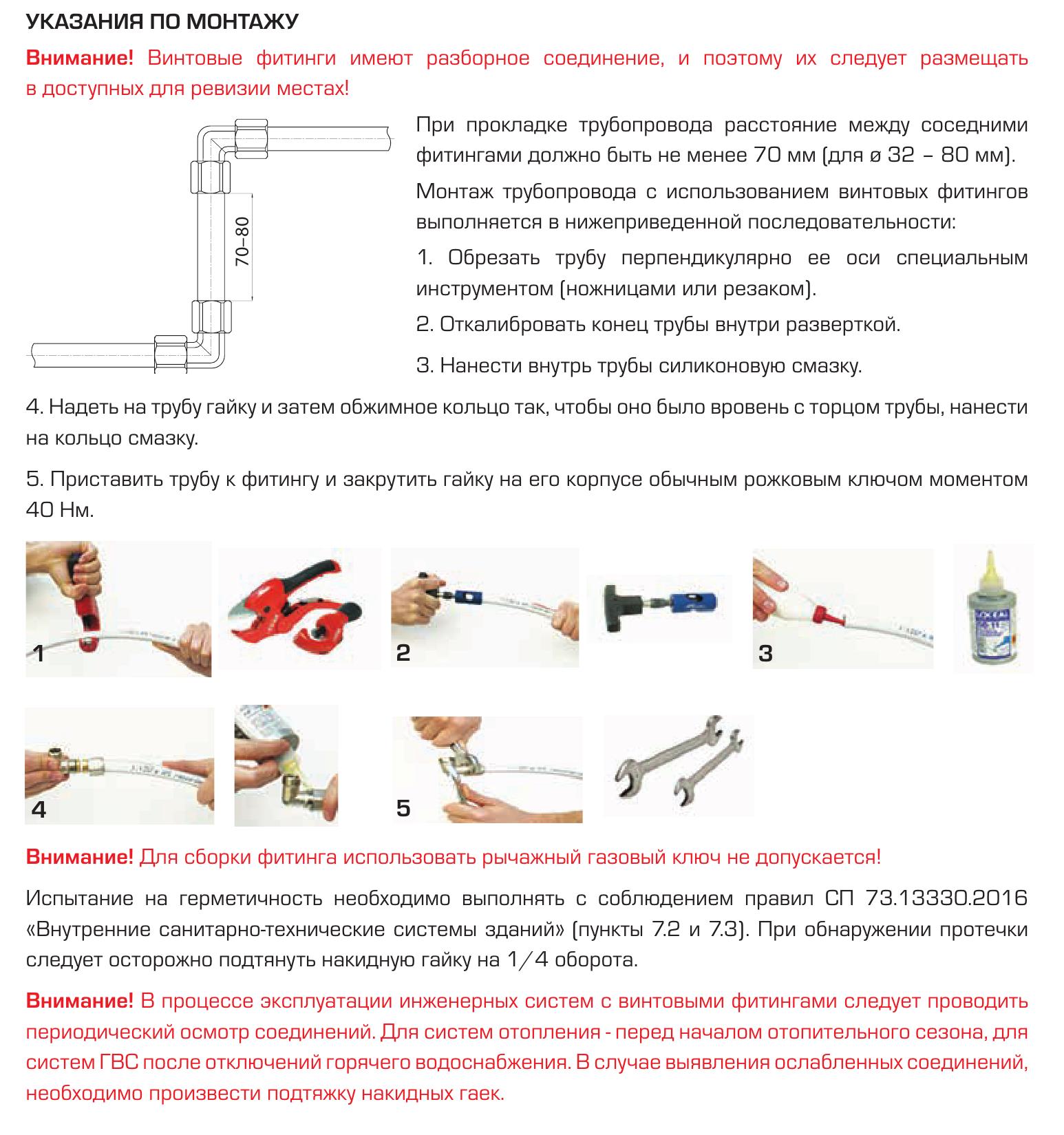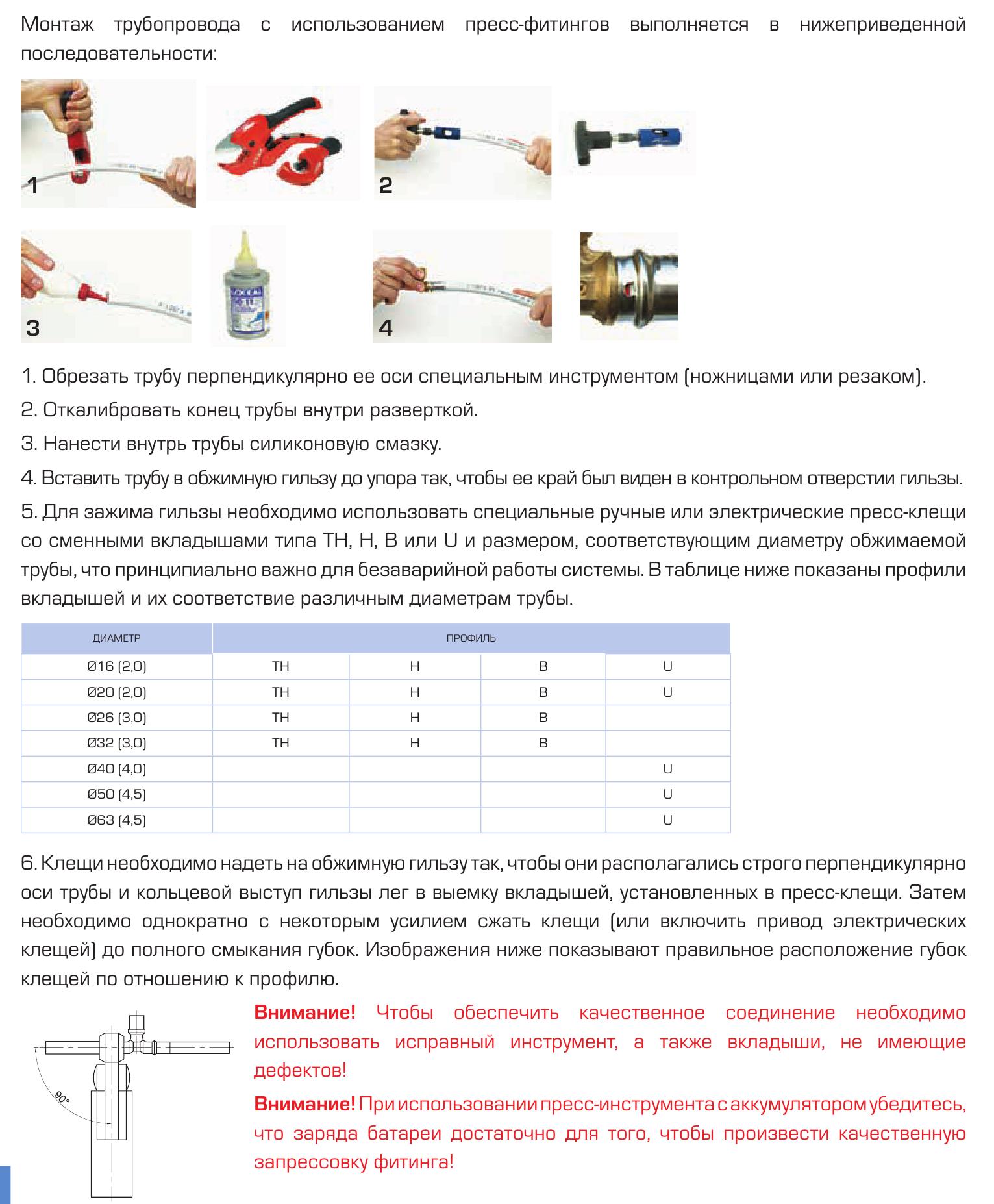 Внимание! При монтаже и эксплуатации пресс-фитингов, применение рычажных газовых ключей категорически запрещено!