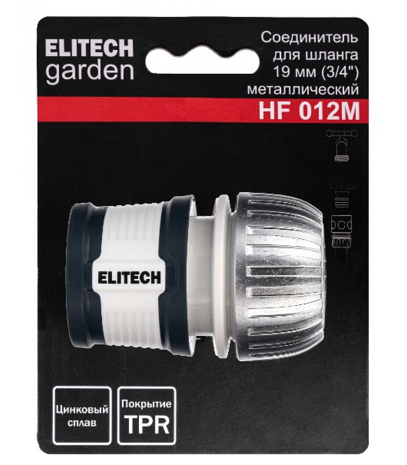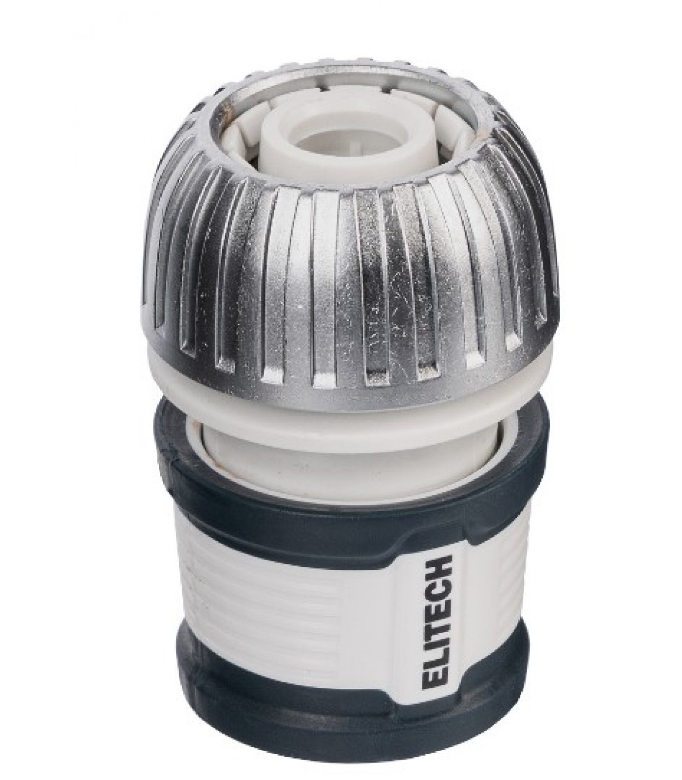 Соединитель для шланга металлический 19 мм 3/4" HF 012M Elitech Garden - необходимый адаптер для быстрого и простого соединения в начале шланга. Отличается особой прочностью благодаря высококачественной конструкции из металлопластика. Прочная металлическая зажимная гайка обеспечивает прочное соединение при высоком давлении в шланге. Мягкое покрытие в области контакта с рукой делает его удобным даже при использовании с мокрыми руками. Совместим с базовой системой полива Elitech Garden и с продукцией других производителей.