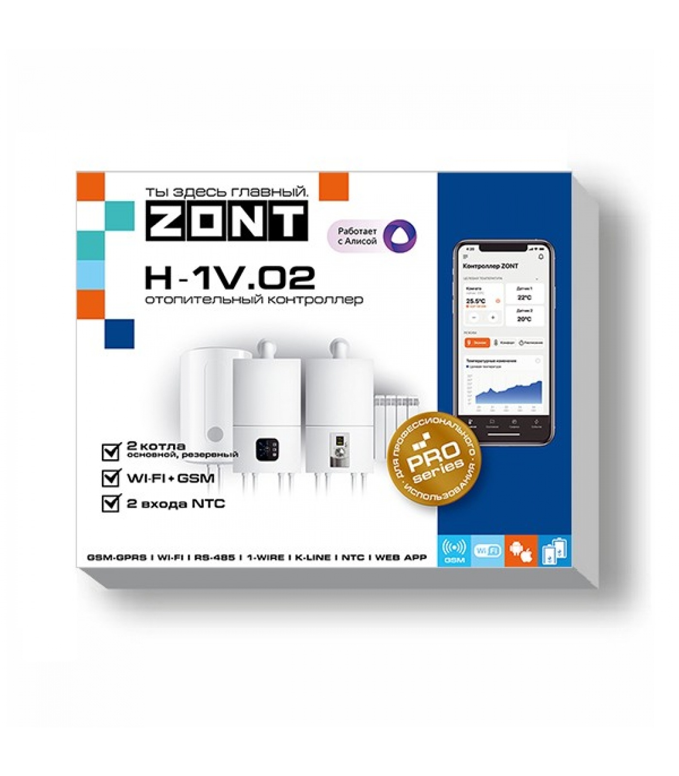Контроллер ZONT H-1V.02 – профессиональное устройство для автоматизации, дистанционного контроля и управления системами отопления с одним или двумя котлами.