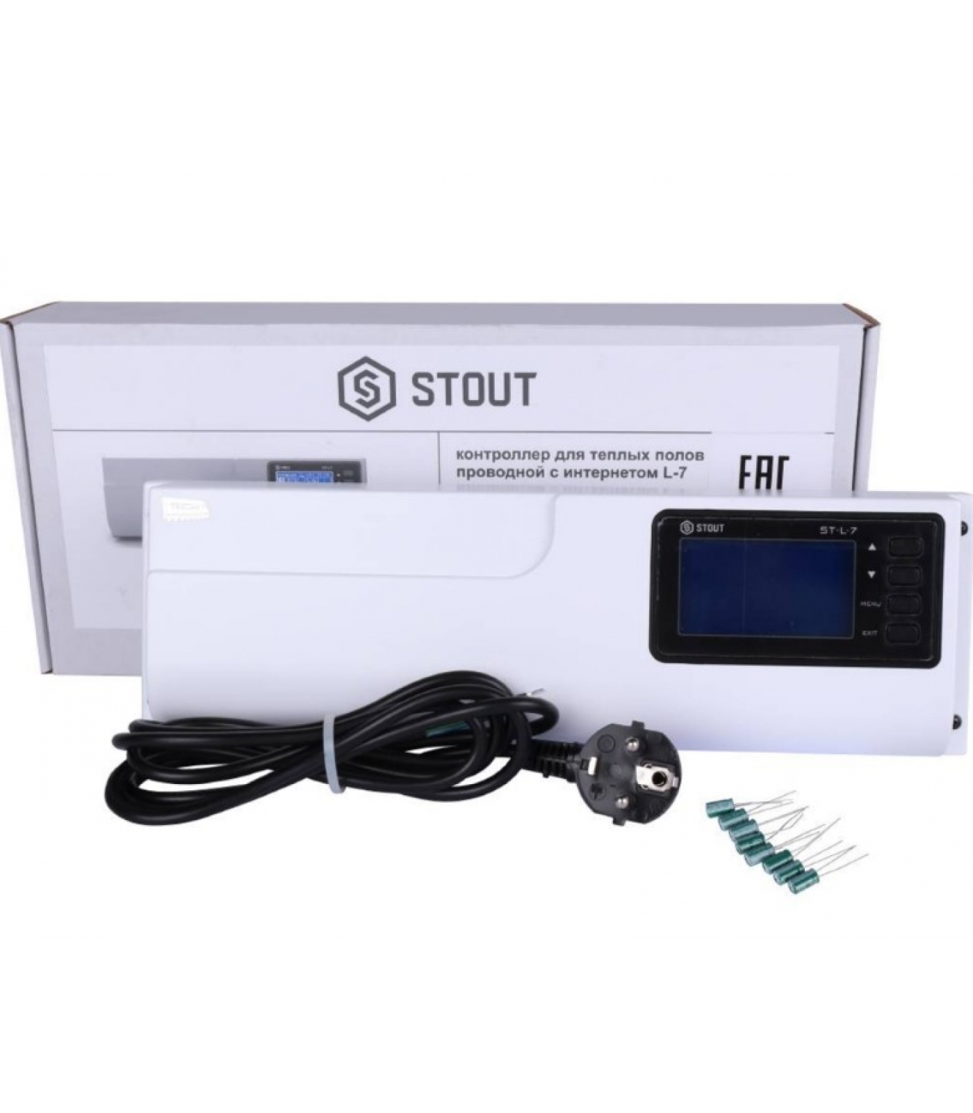 Проводной контроллер L-7 STOUT предназначен для управления электротермическими приводами на основе сигнала от комнатных датчиков температуры воздуха.