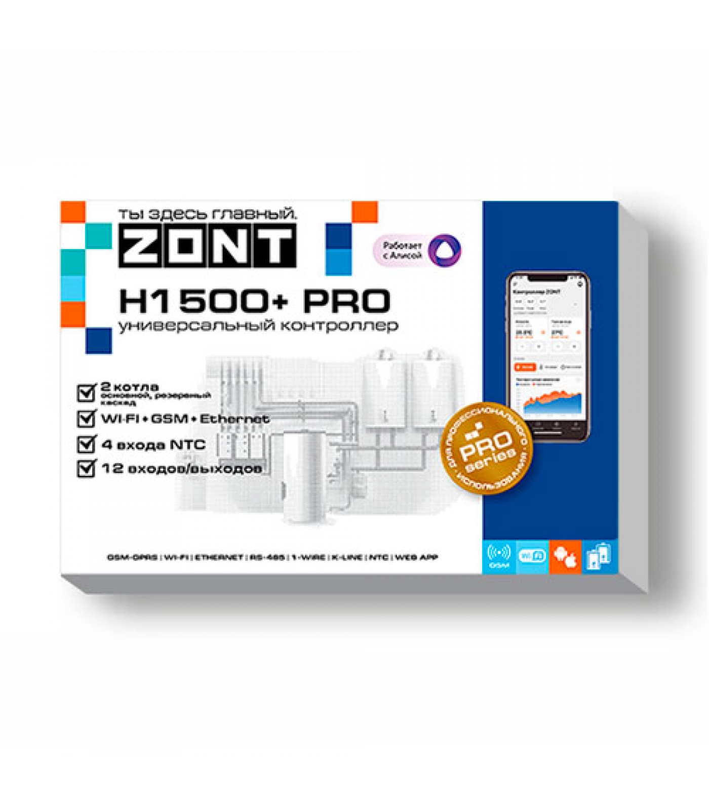 Универсальный контроллер ZONT H1500+ PRO обладает широким функционалом и подходит для контроля и управления сложными системами отопления. Прибор является современной версией контроллера ZONT H1000+ и соответствует профессиональным стандартам ZONT.