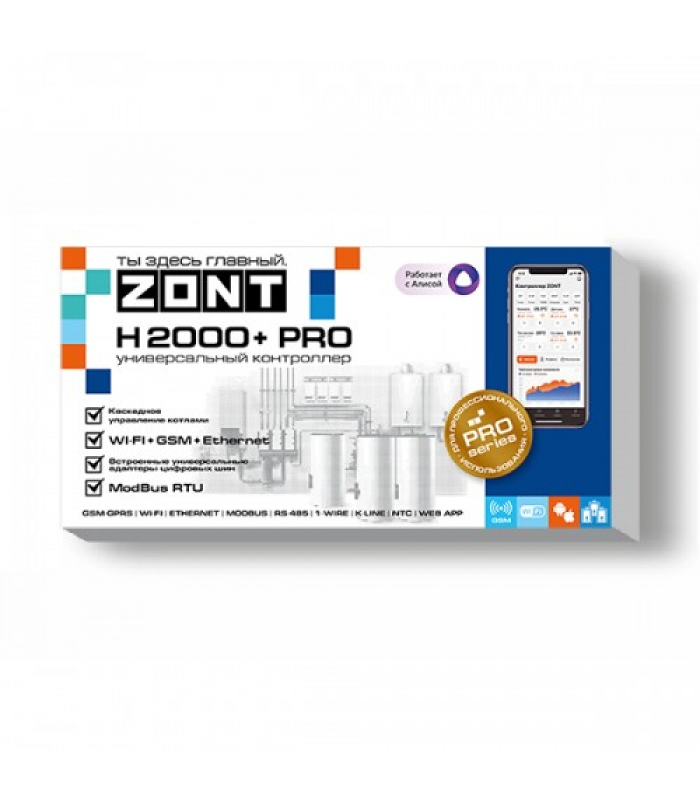 Универсальный контроллер ZONT H2000+ PRO – прибор для профессиональной автоматизации и дистанционного управления инженерными системами любой сложности.