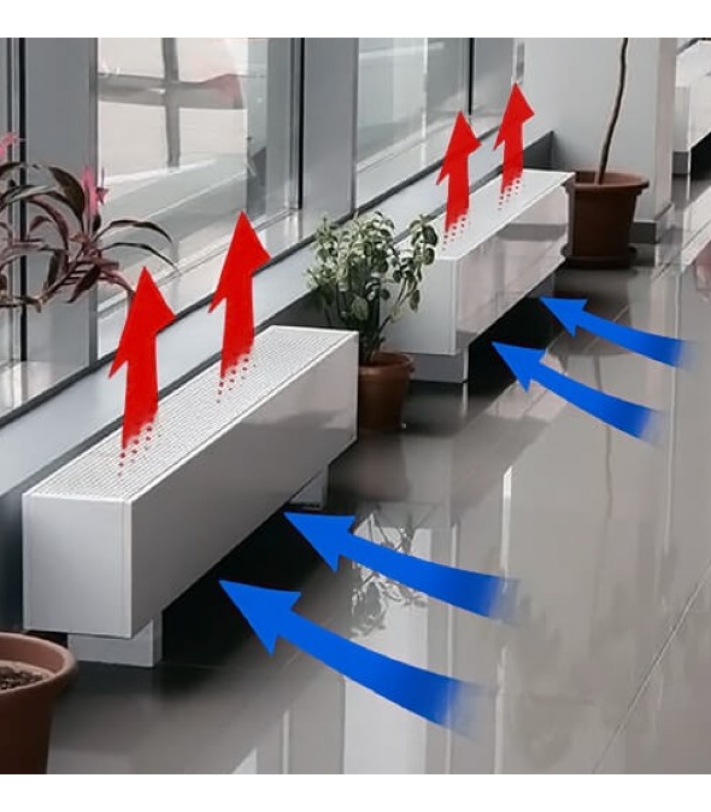 Напольно-настенный конвектор Techno Vita с естественной конвекцией серии KPZ – современные эргономичные отопительные приборы напольного(настенного) монтажа. Идеально подходят для помещений с панорамным остеклением, низкими подоконниками, большими и витринными окнами.