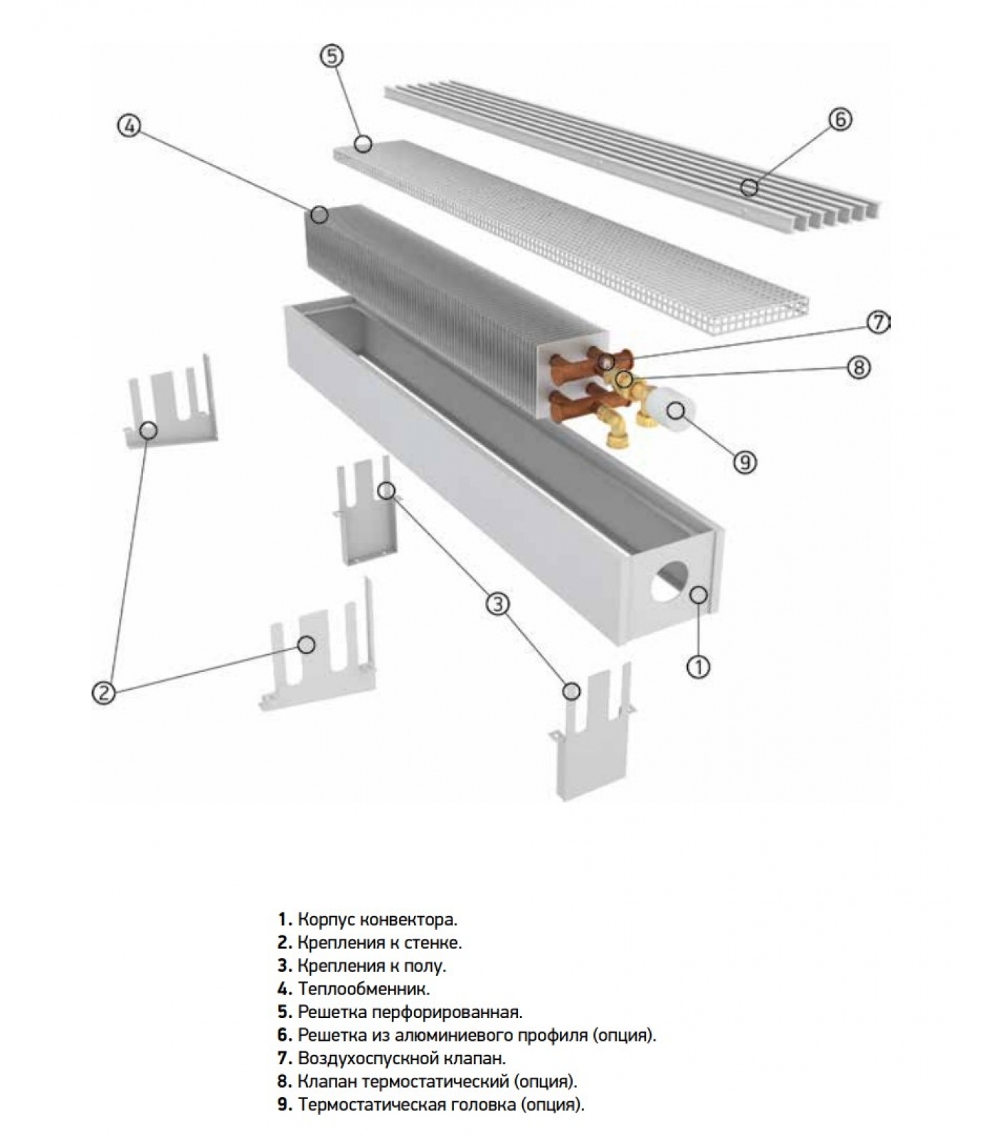 Высота конвектора указана без учета ножек. В стандартном исполнении высота ножек 100 мм