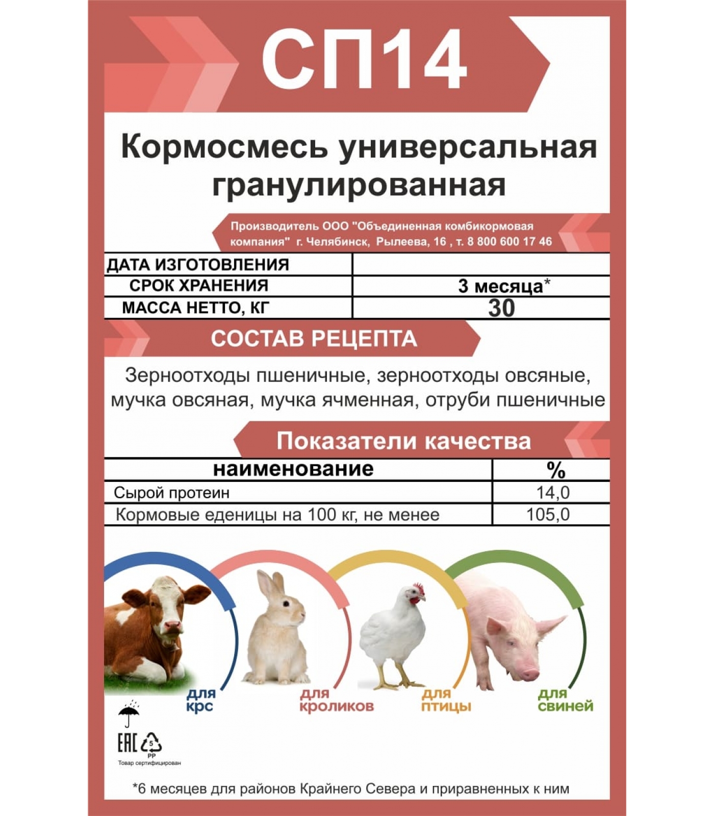 СП-14 - Универсальная кормосмесь гранулированная