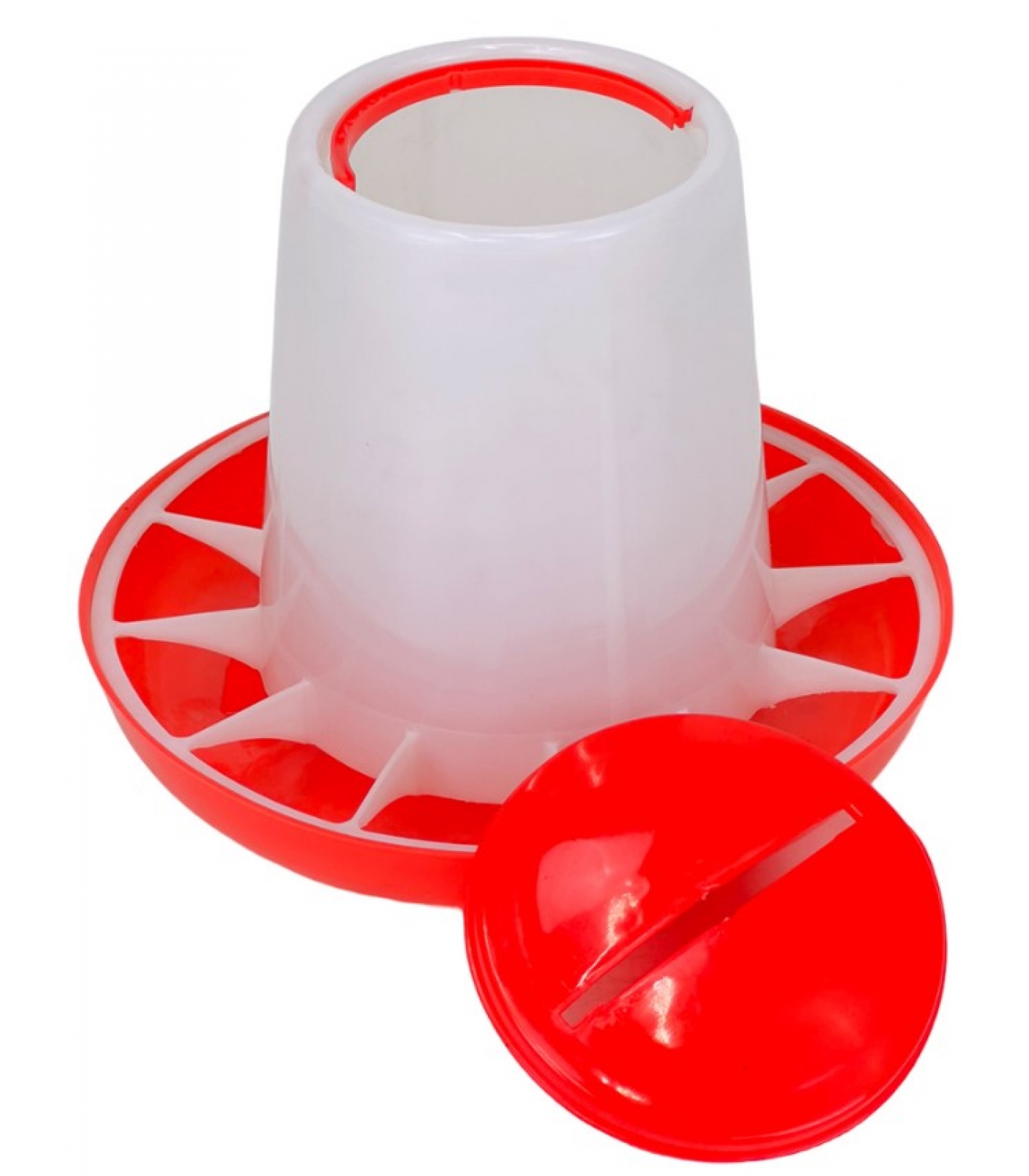 Кормушка для кур, бройлеров и другой домашней птицы вместимостью 6 кг со встроенной разделительной решеткой является идеальным решением для обеспечения птицы сухом кормом. Кормушка изготовлена из качественного пластика, устойчивого к перепаду температур, что делает ее подходящей для использования как внутри помещений, так и на открытом воздухе. Кормушка состоит из трех частей: резервуара с разделительной решеткой, поддона и крышки. Это позволяет легко собрать и разобрать кормушку для удобной очистки и дезинфекции. Верхний бункер для корма соединяется с поддоном с помощью специальных застежек, что обеспечивает прочное соединение и предотвращает разброс корма.