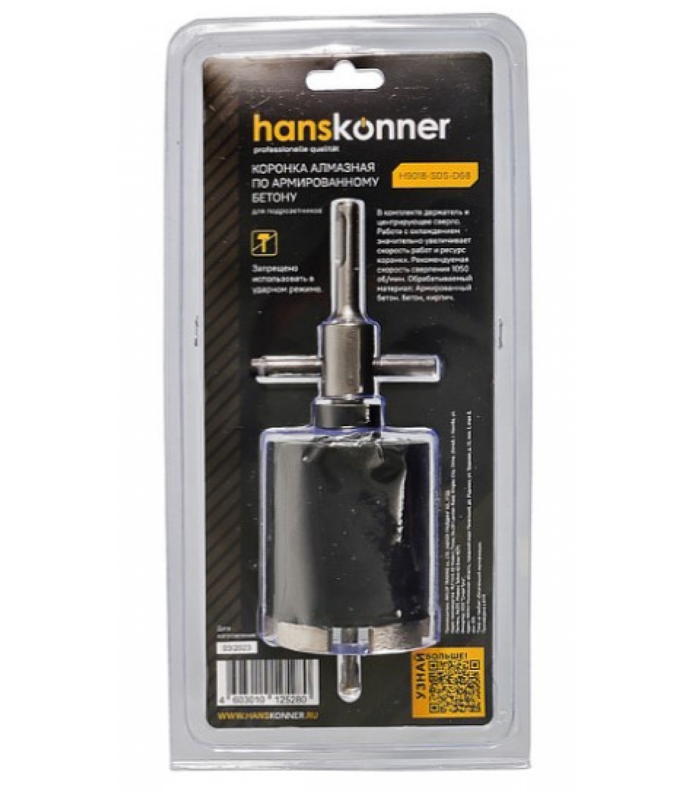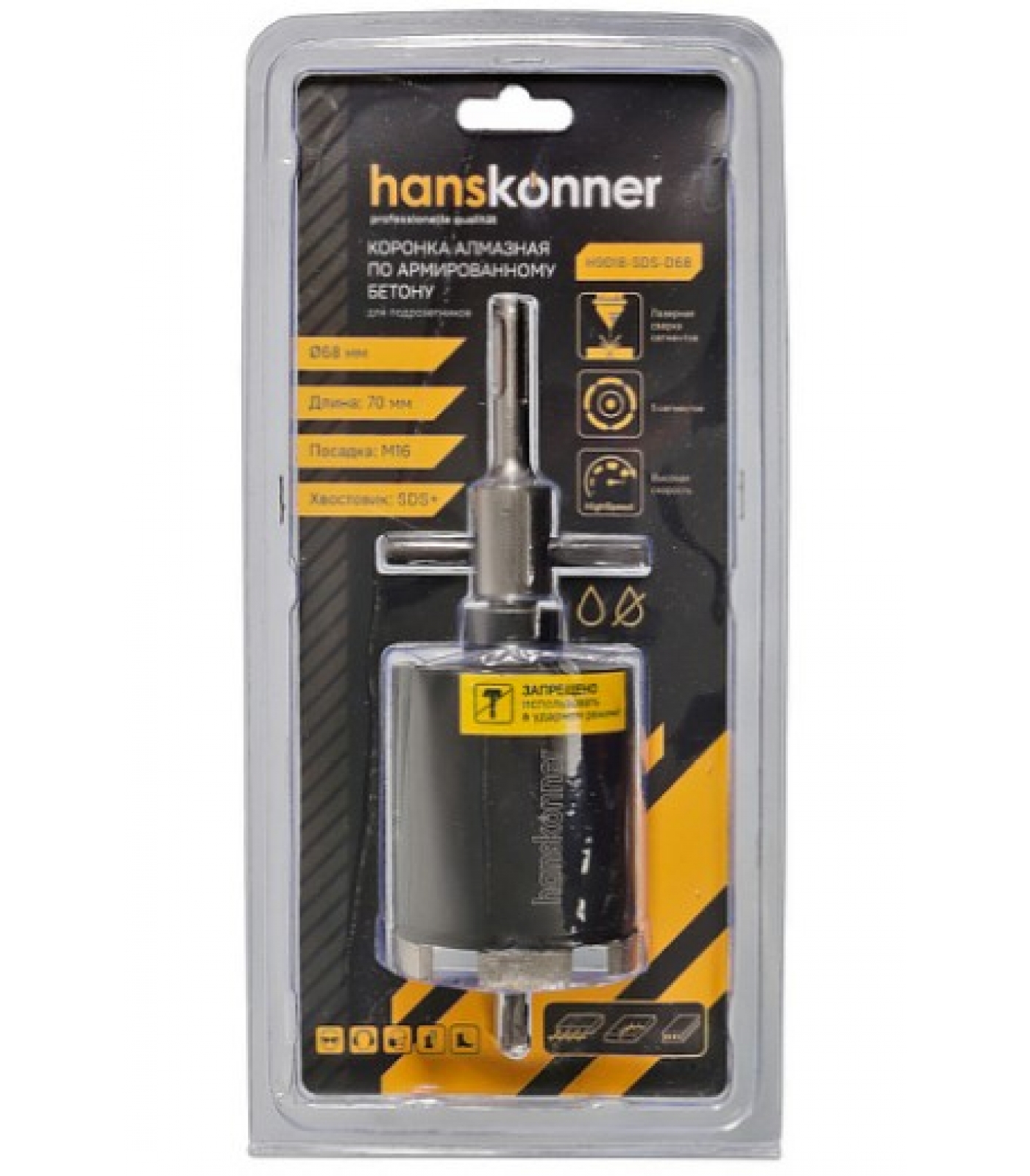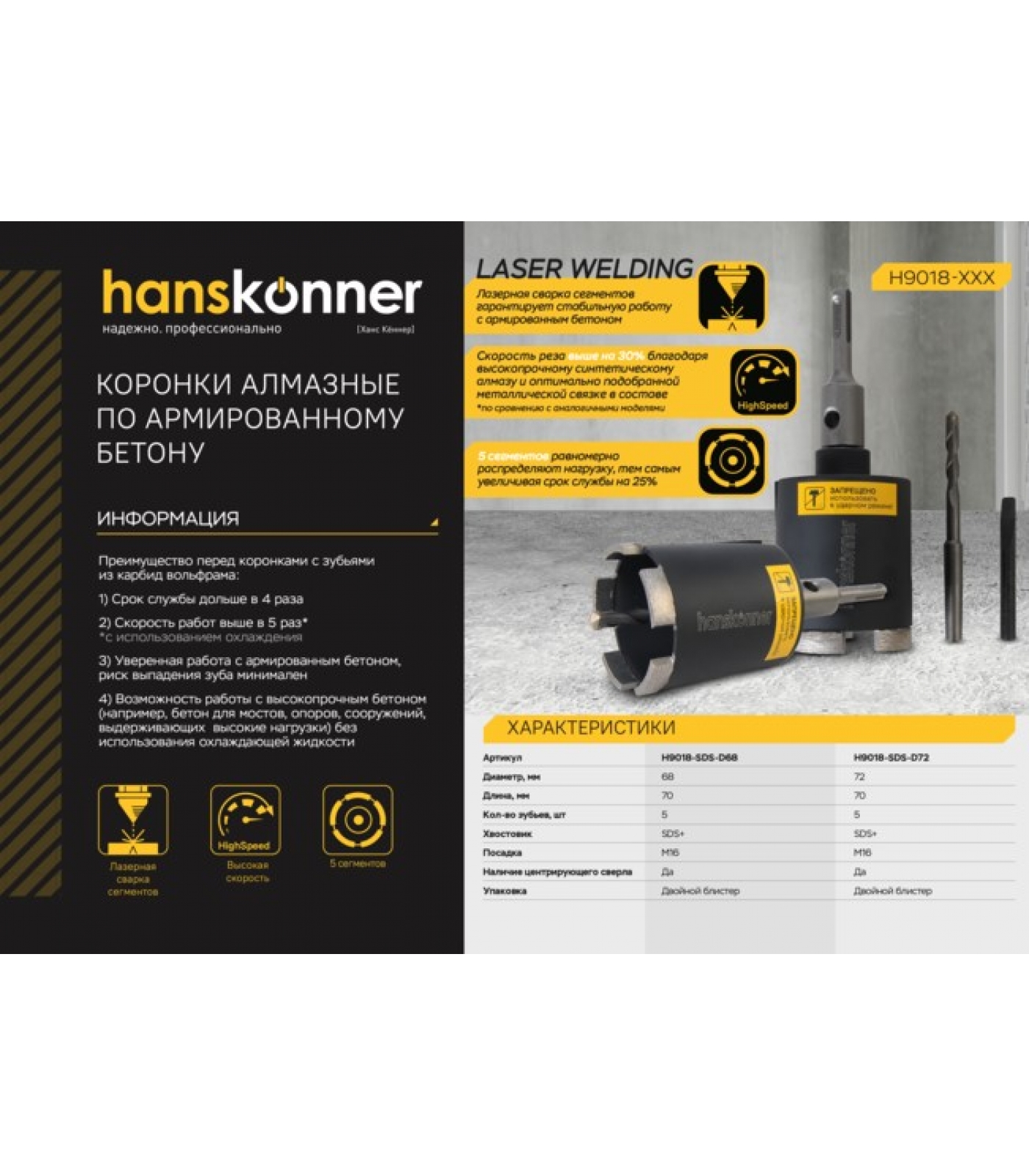 Hanskonner H9018-SDS-D68 Коронка алмазная по армированному бетону 68*80 мм, 5 сегментов