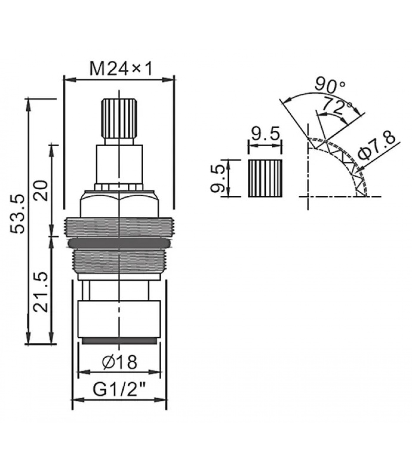 Кран-букса Gerhans керамическая 1/2", 180 градусов, 20 шлицов, 2 шт в блистере