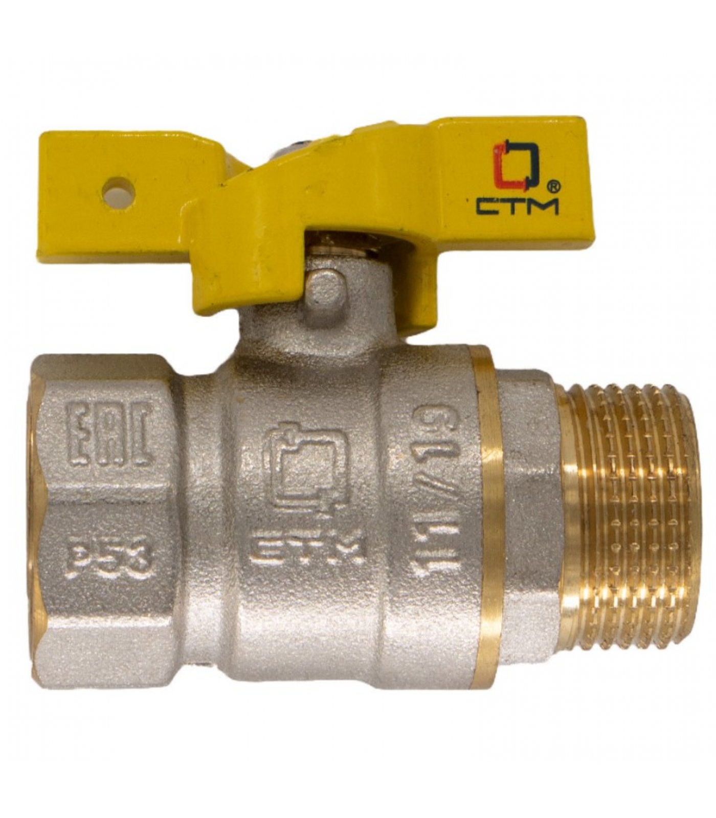 Кран газовый 3/4"ВР/НР СТМ ГАЗ CGFMB полнопроходной, бабочка желтая