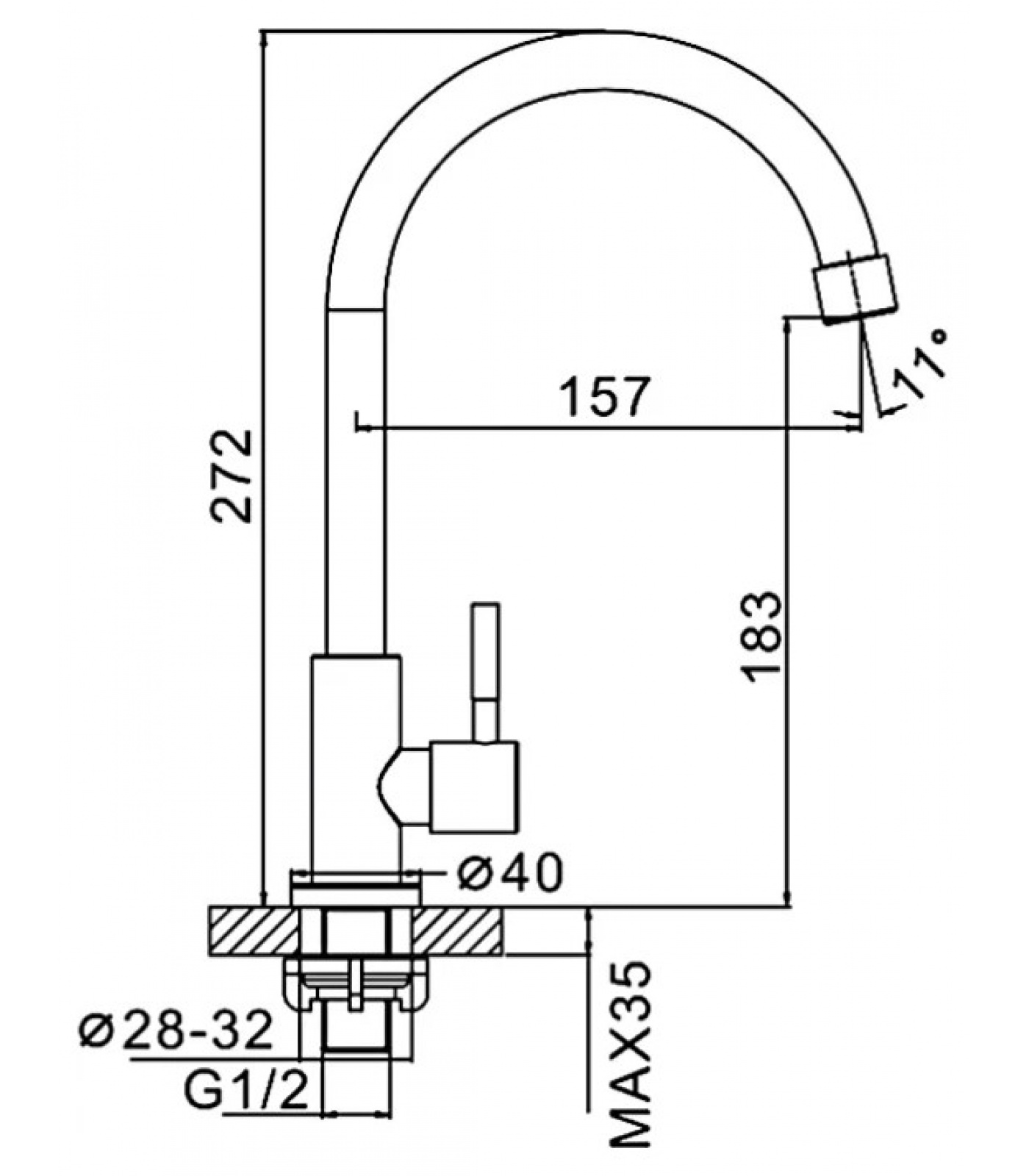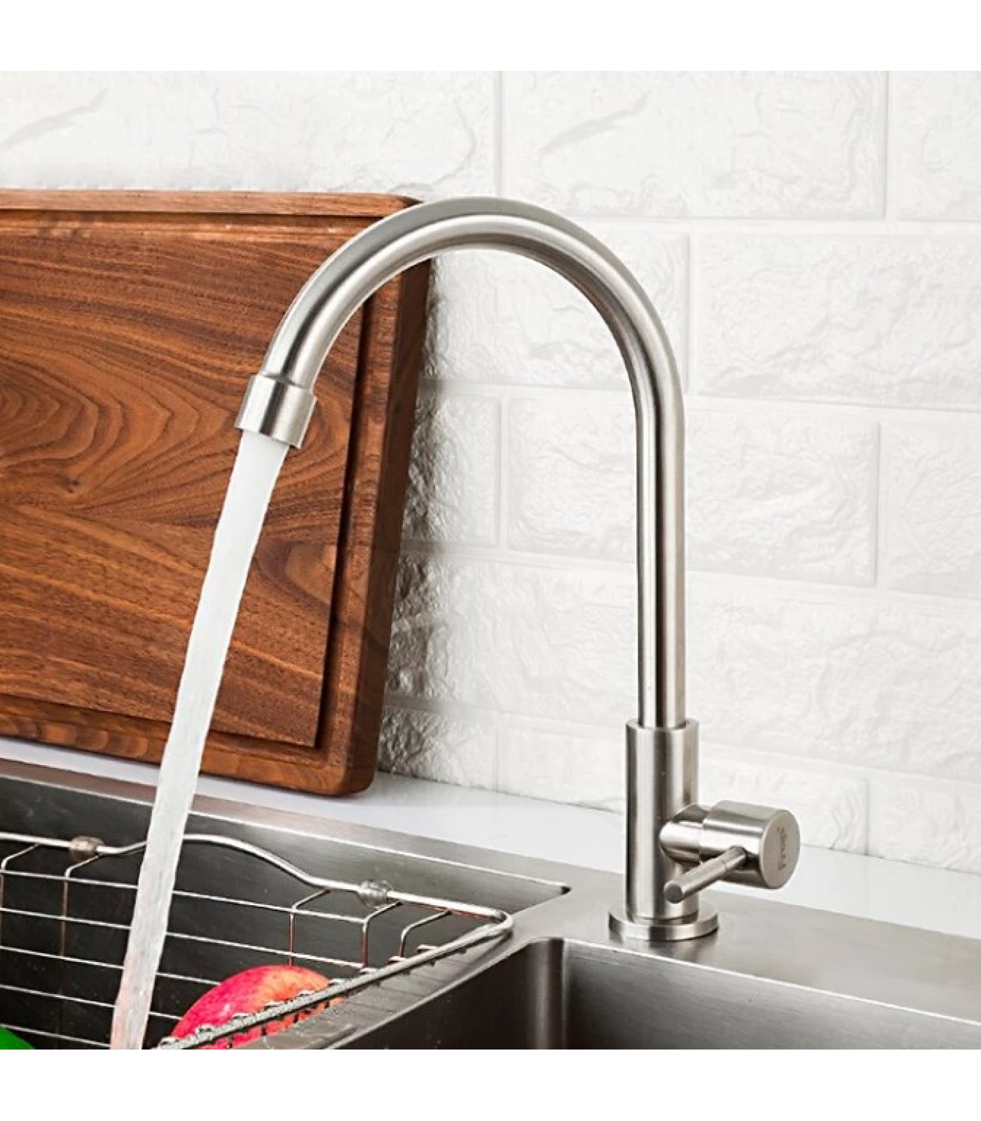Кран-моно Frap 41899-6 нержавеющая сталь, рычажный, высокий излив