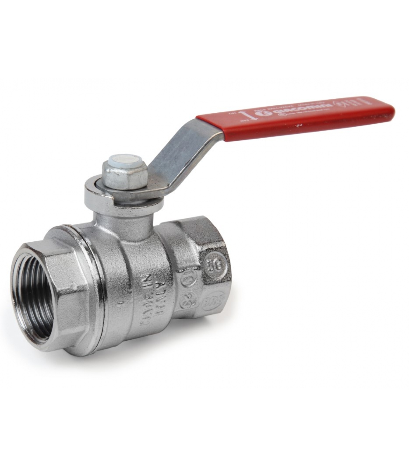 R850 Кран шаровой полнопроходной, резьба внутренняя/внутренняя, хромированный, ручка - рычаг красный