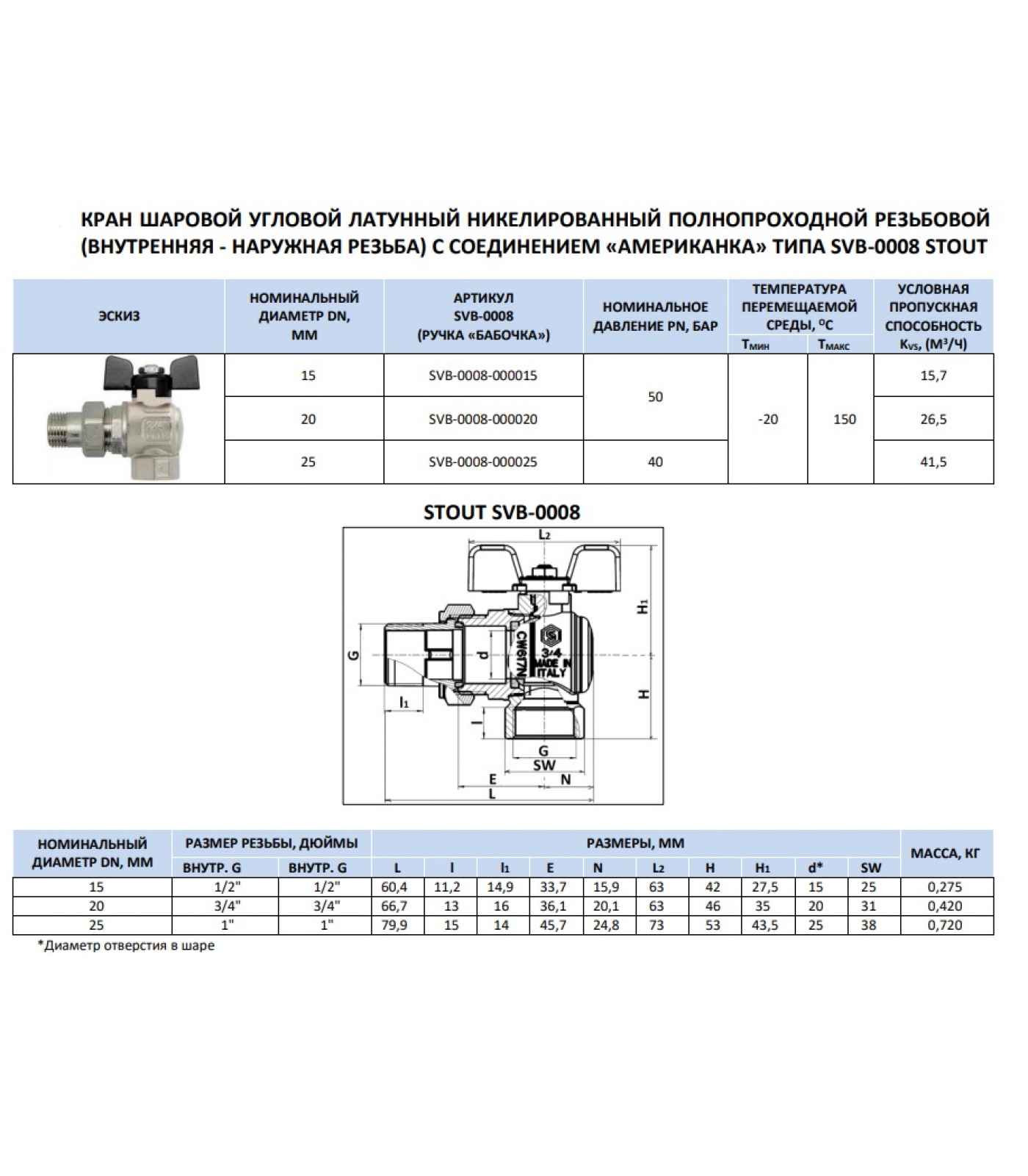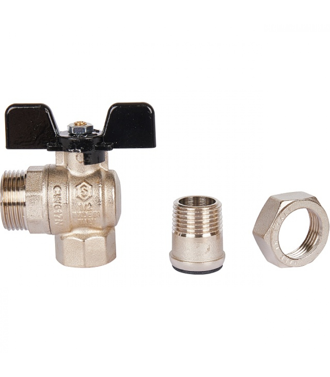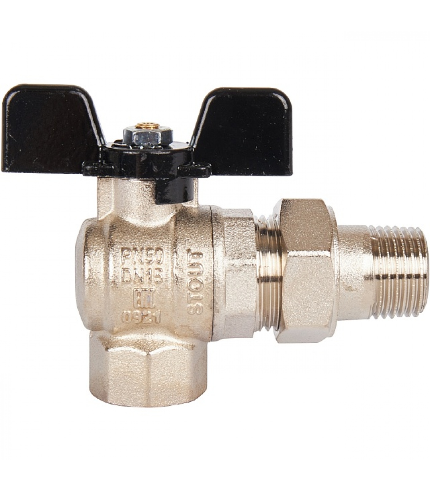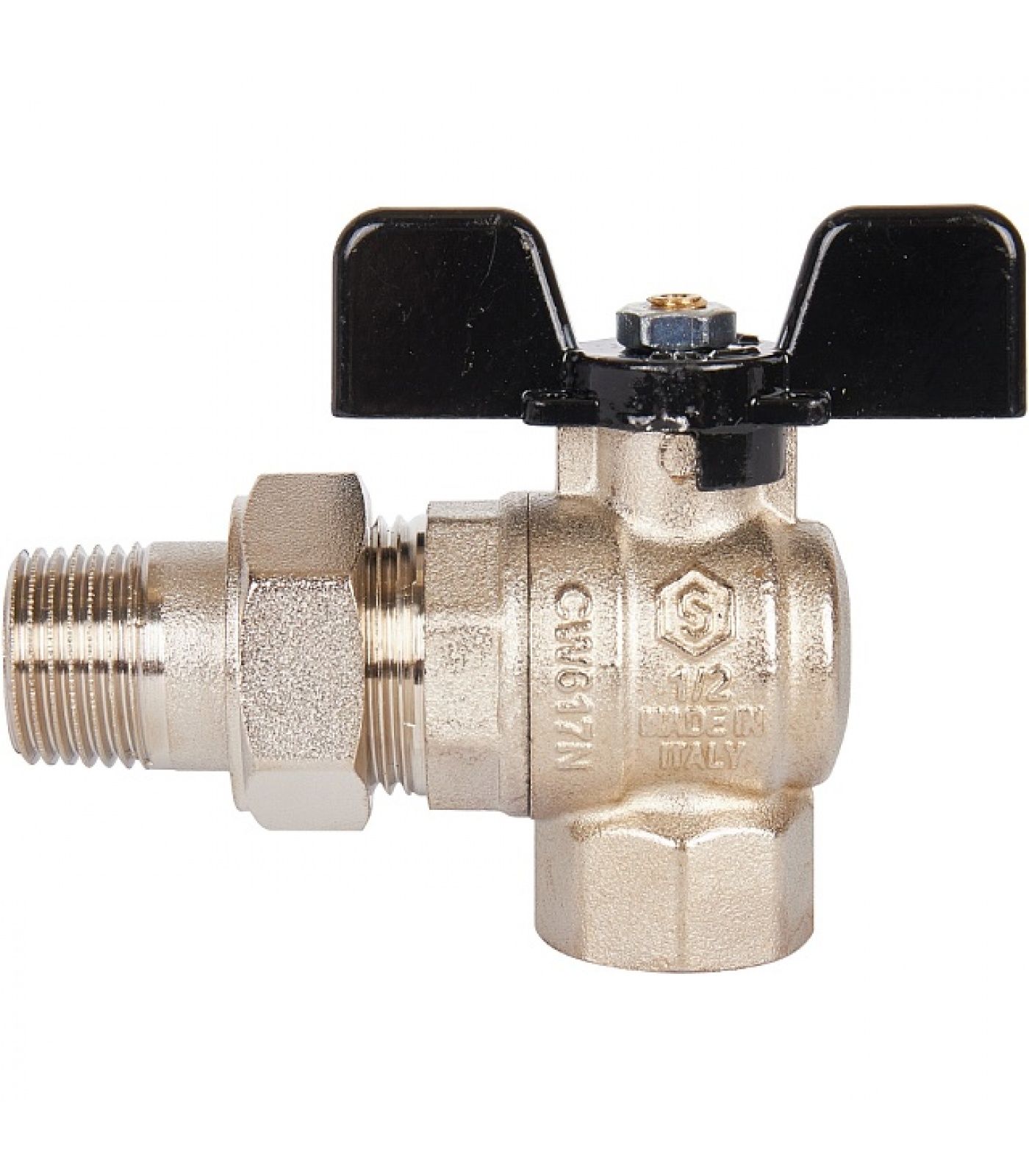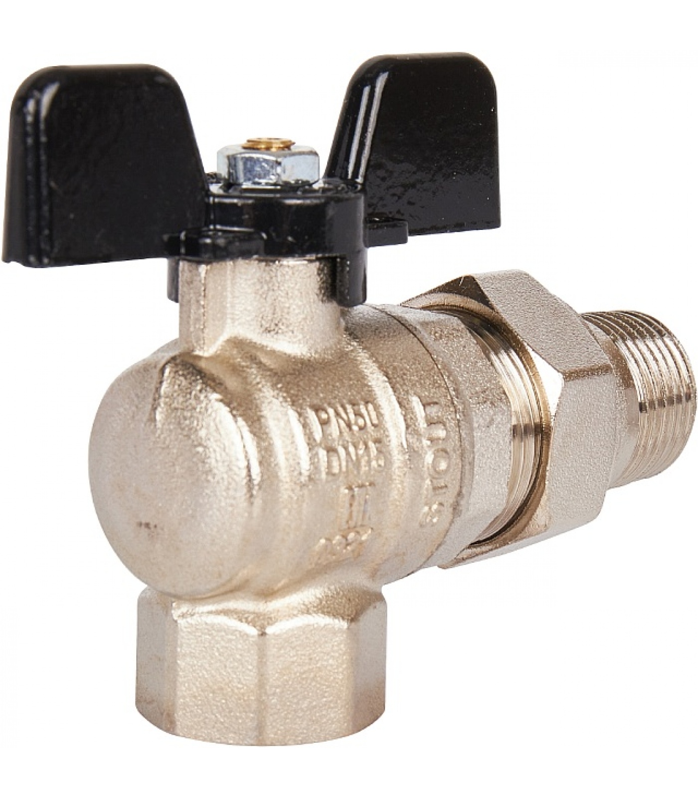 Кран шаровой полнопроходной STOUT угловой, ВР/НР, ручка бабочка 1/2, американка