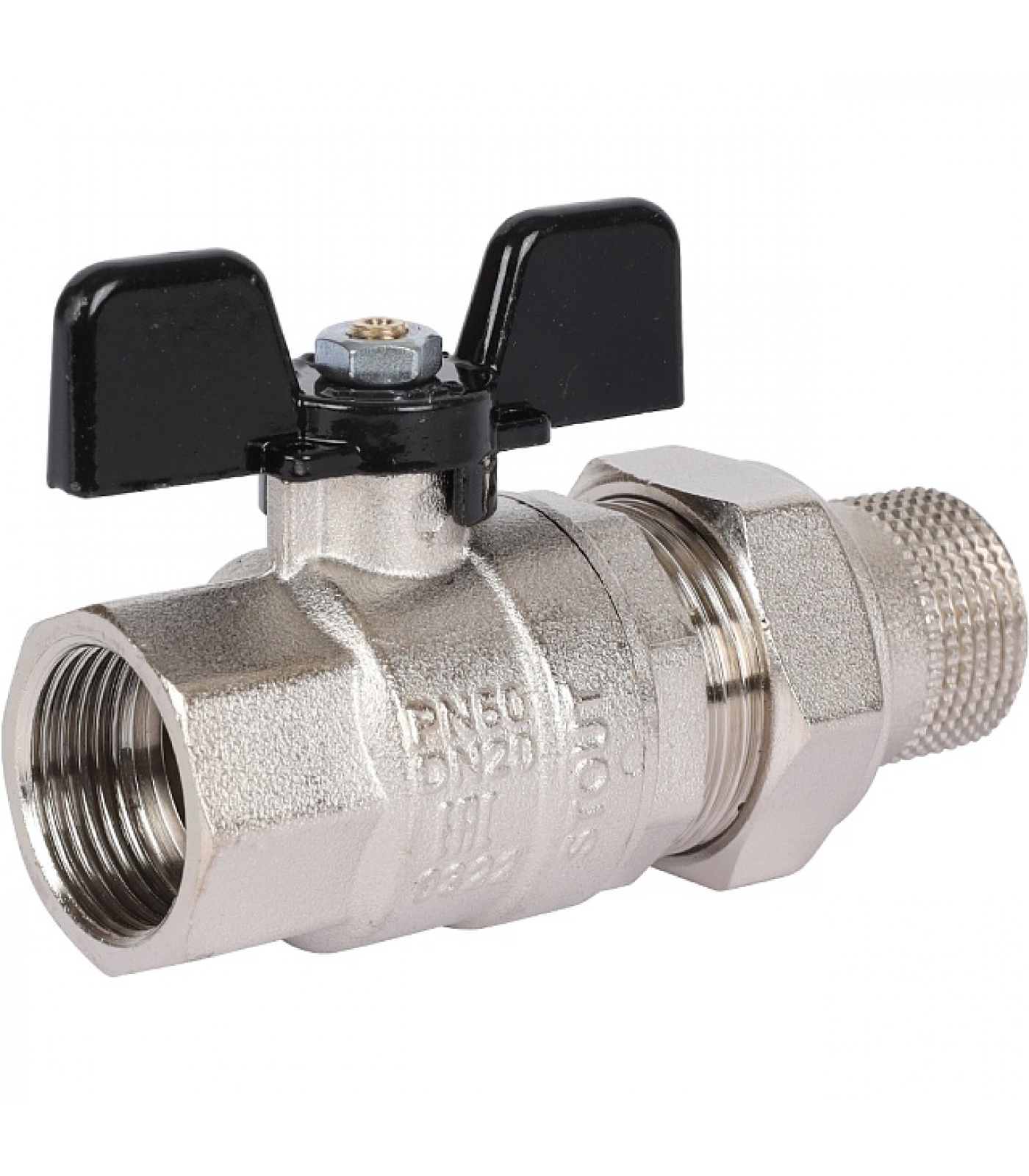 Кран шаровой полнопроходной STOUT ВР/НР, ручка бабочка 3/4, американка