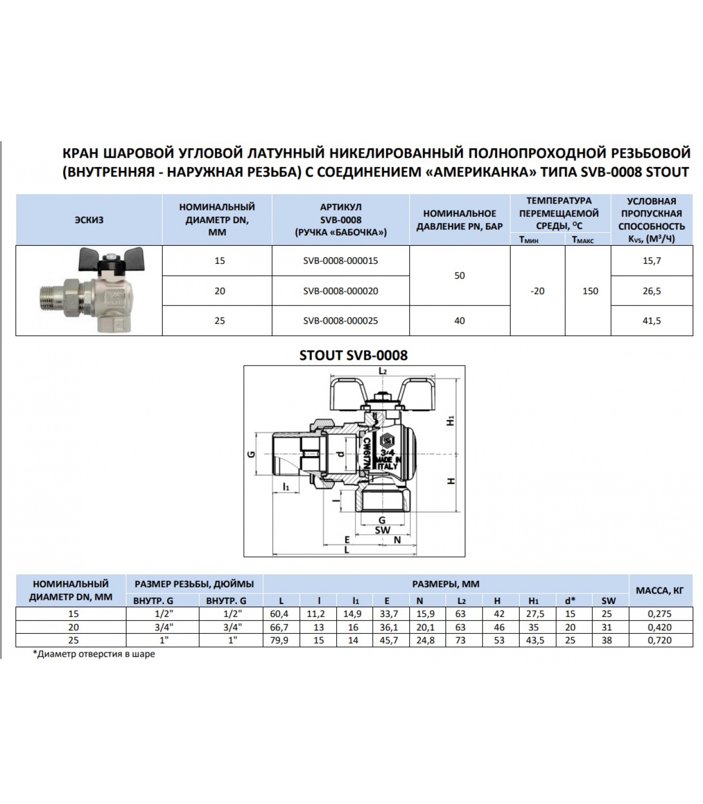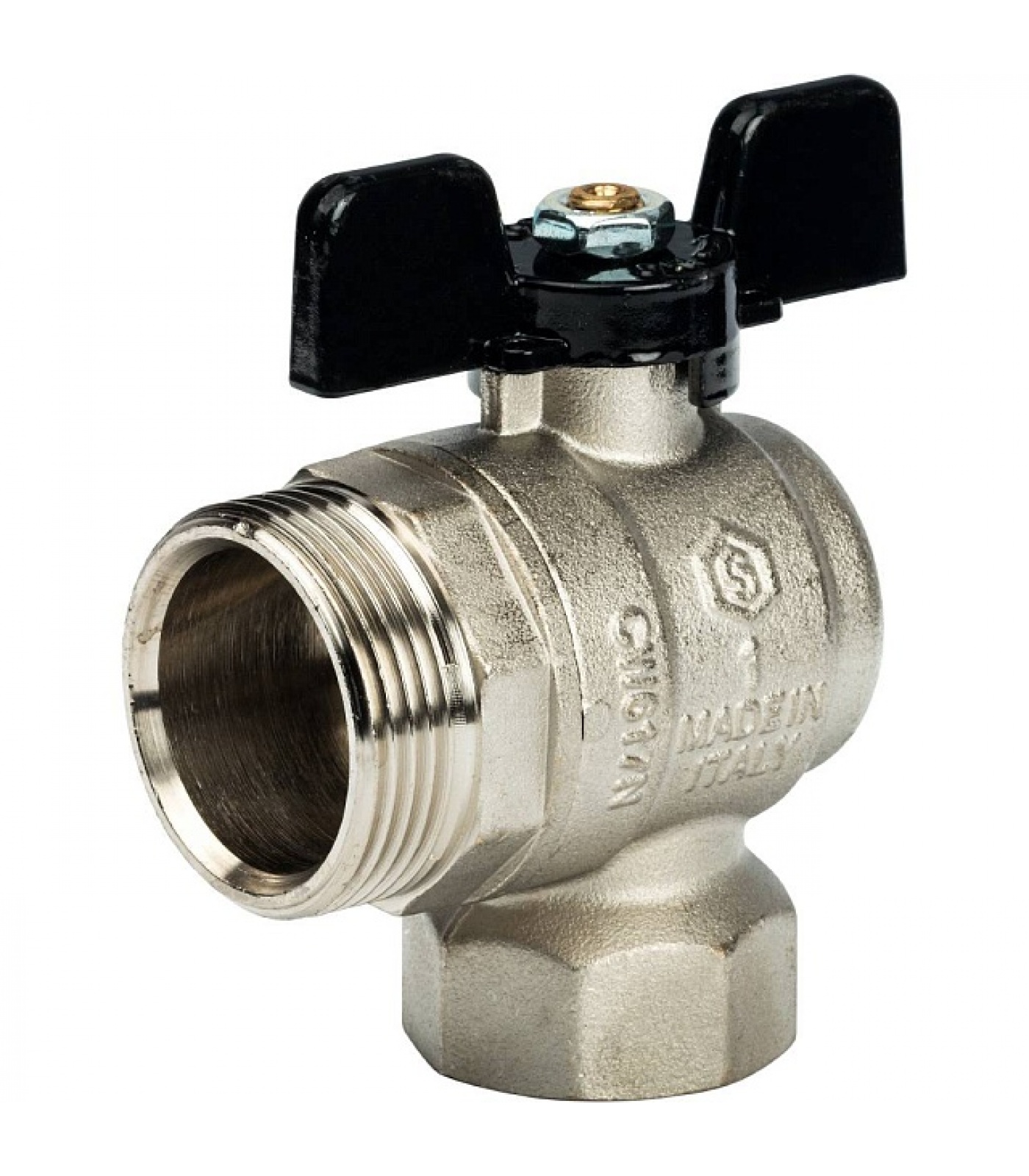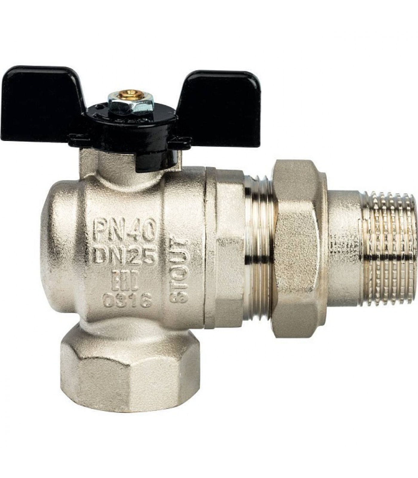 Кран шаровой полнопроходной угловой STOUT ВР/НР, ручка бабочка 1, американка
