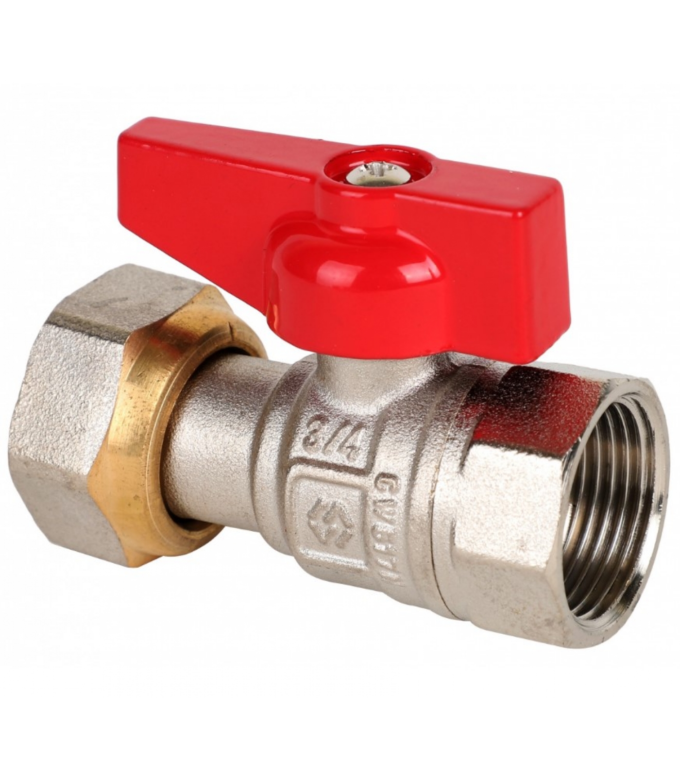 Кран шаровой с накидной гайкой 3/4"ВР х 3/4" MVI полнопроходной, бабочка красная