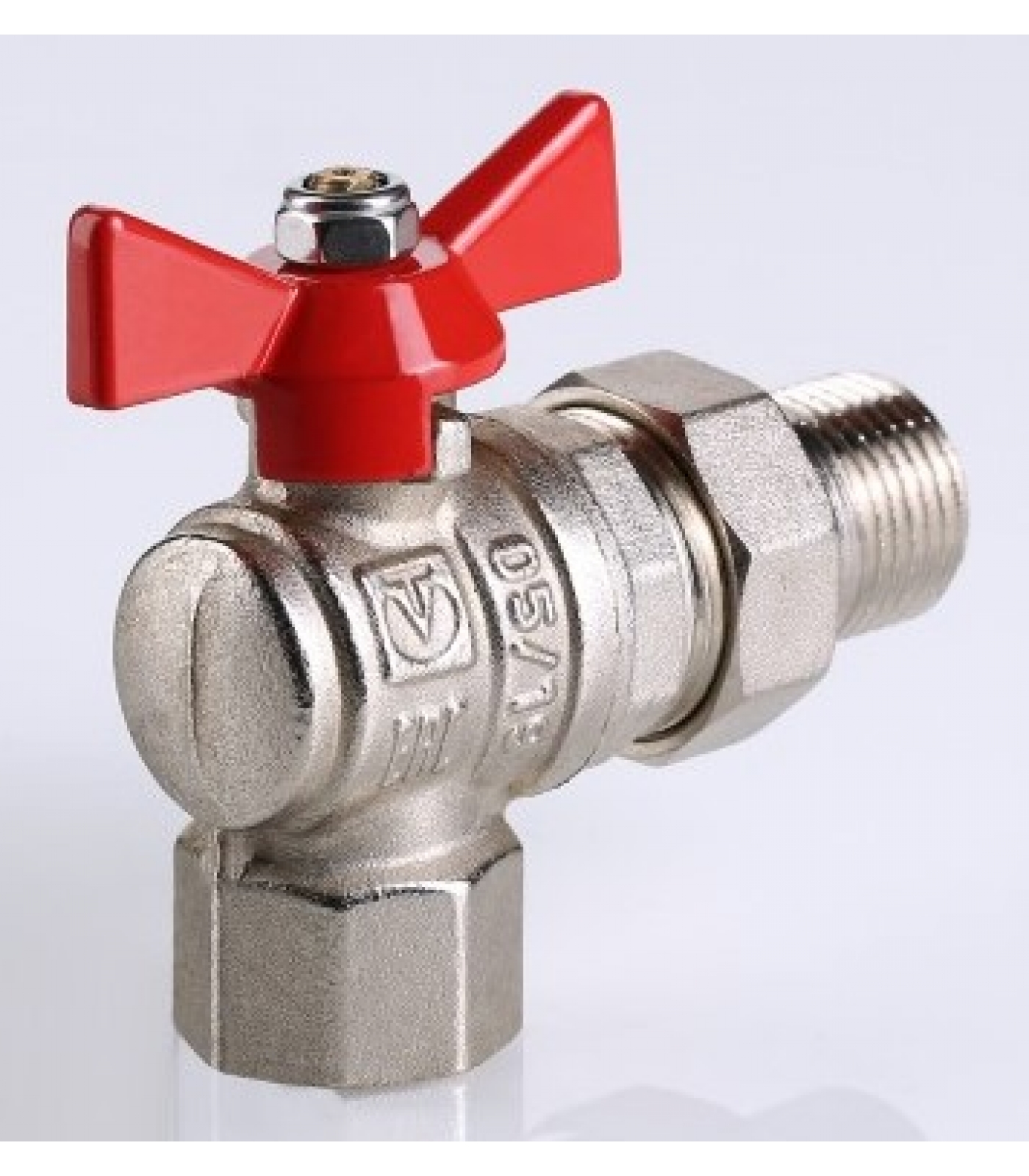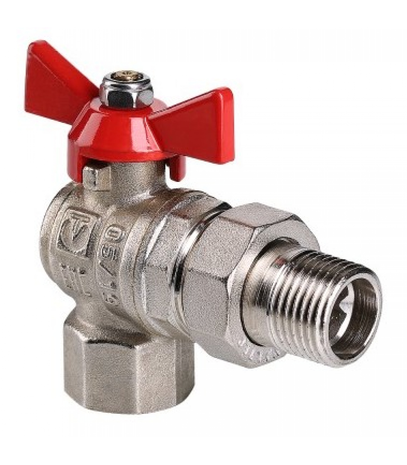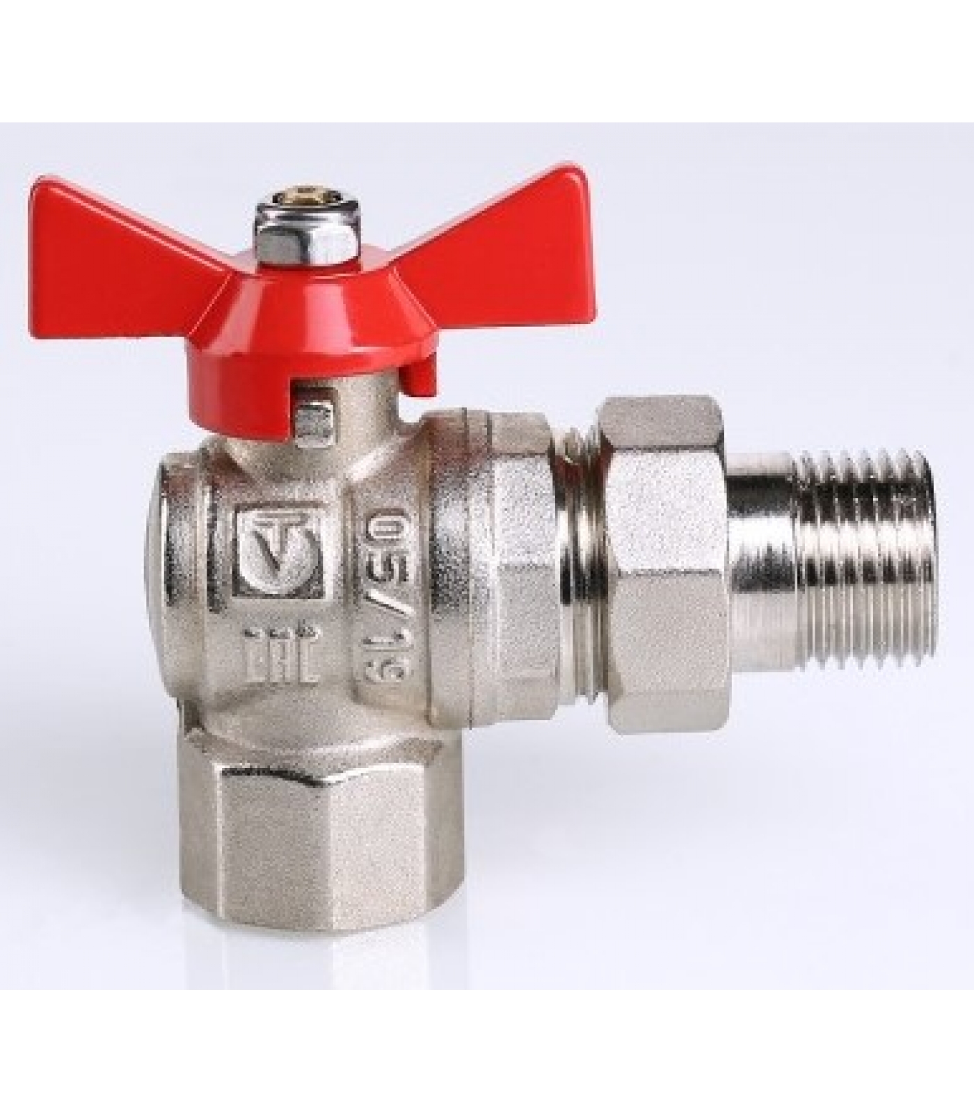 Кран шаровой со сгоном 1/2"ВР/НР Valtec Base угловой, ручка-бабочка красная