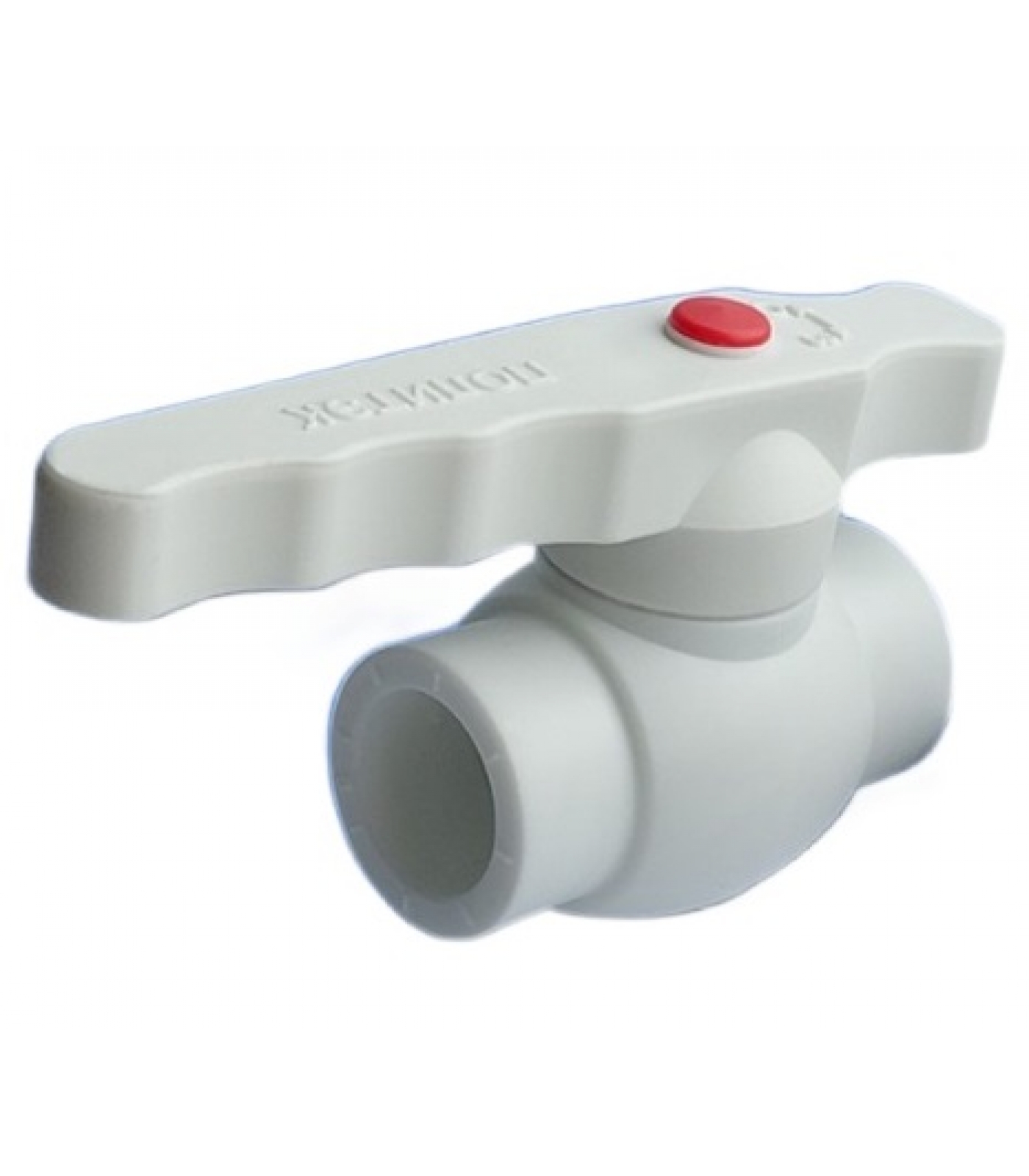 Кран шаровой полнопроходной Политэк для полипропиленовых труб горячего и холодного водоснабжения (белый) PPR диаметром 25 мм