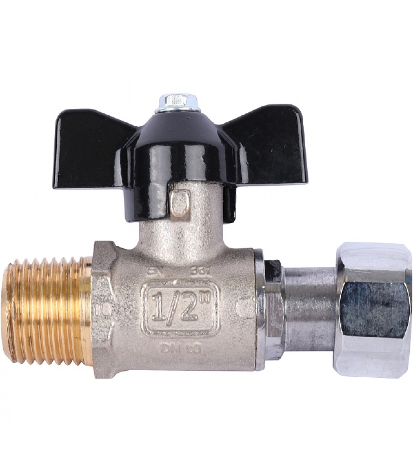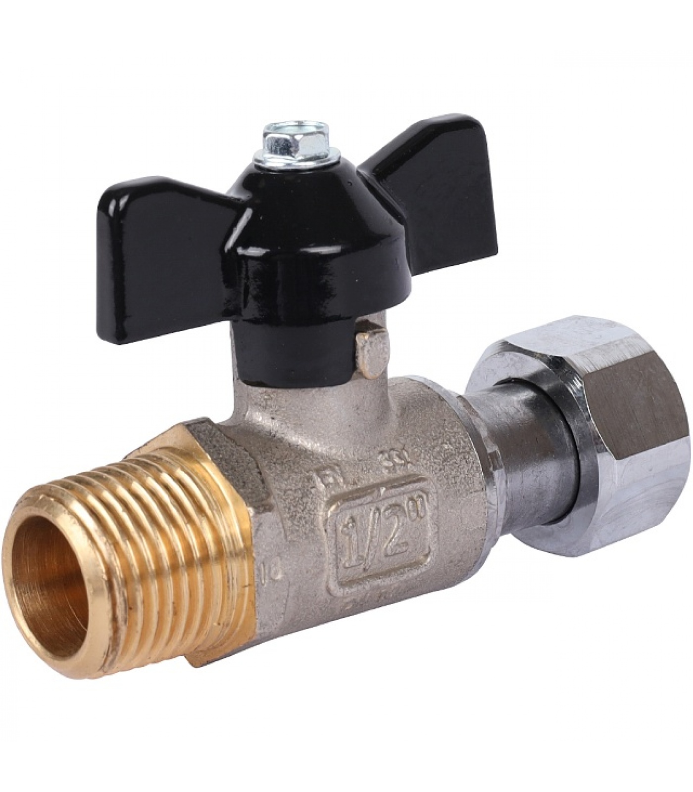 Кран шаровой STOUT 1/2x1/2 с накидной гайкой, НР/накидная гайка, ручка бабочка