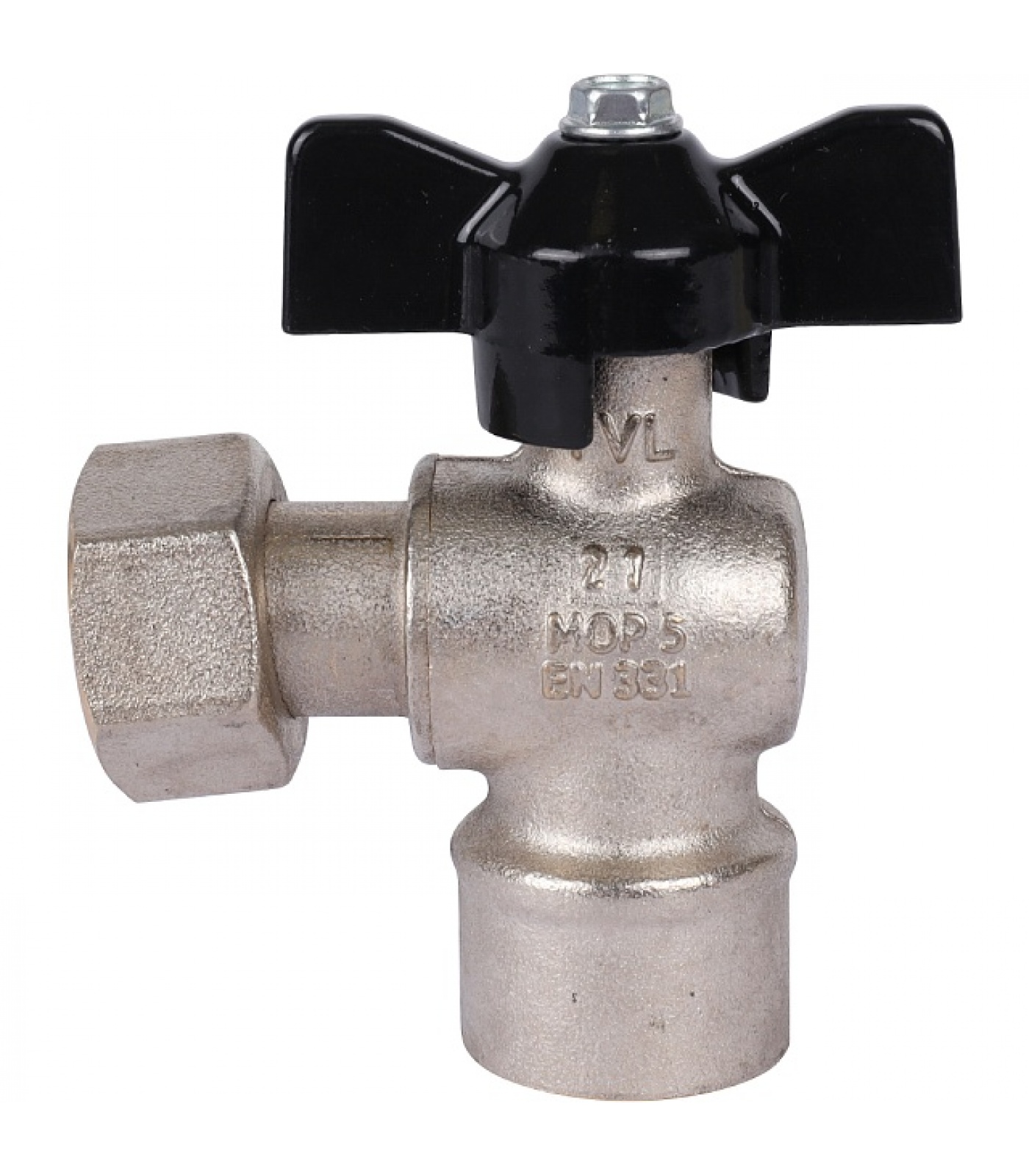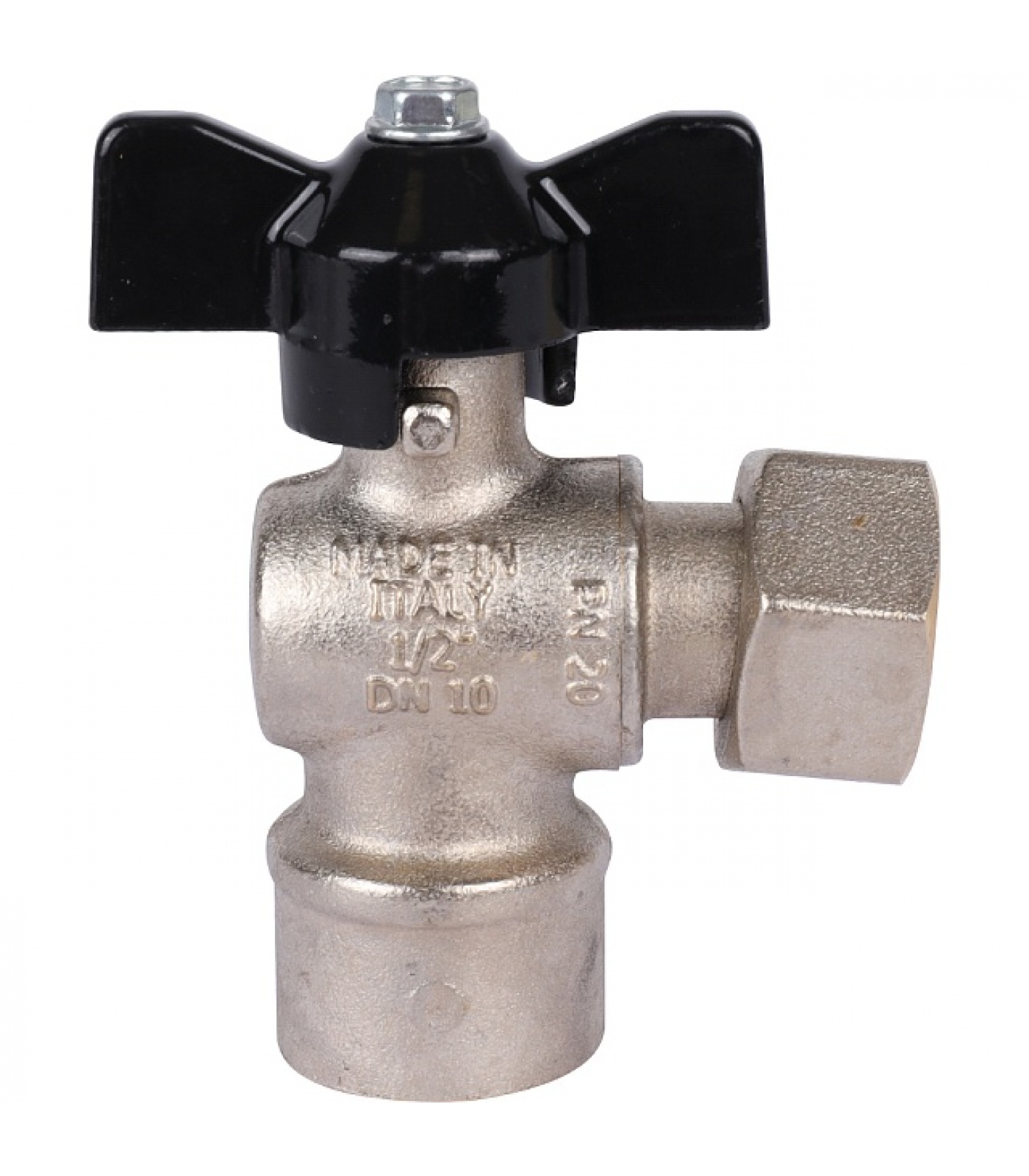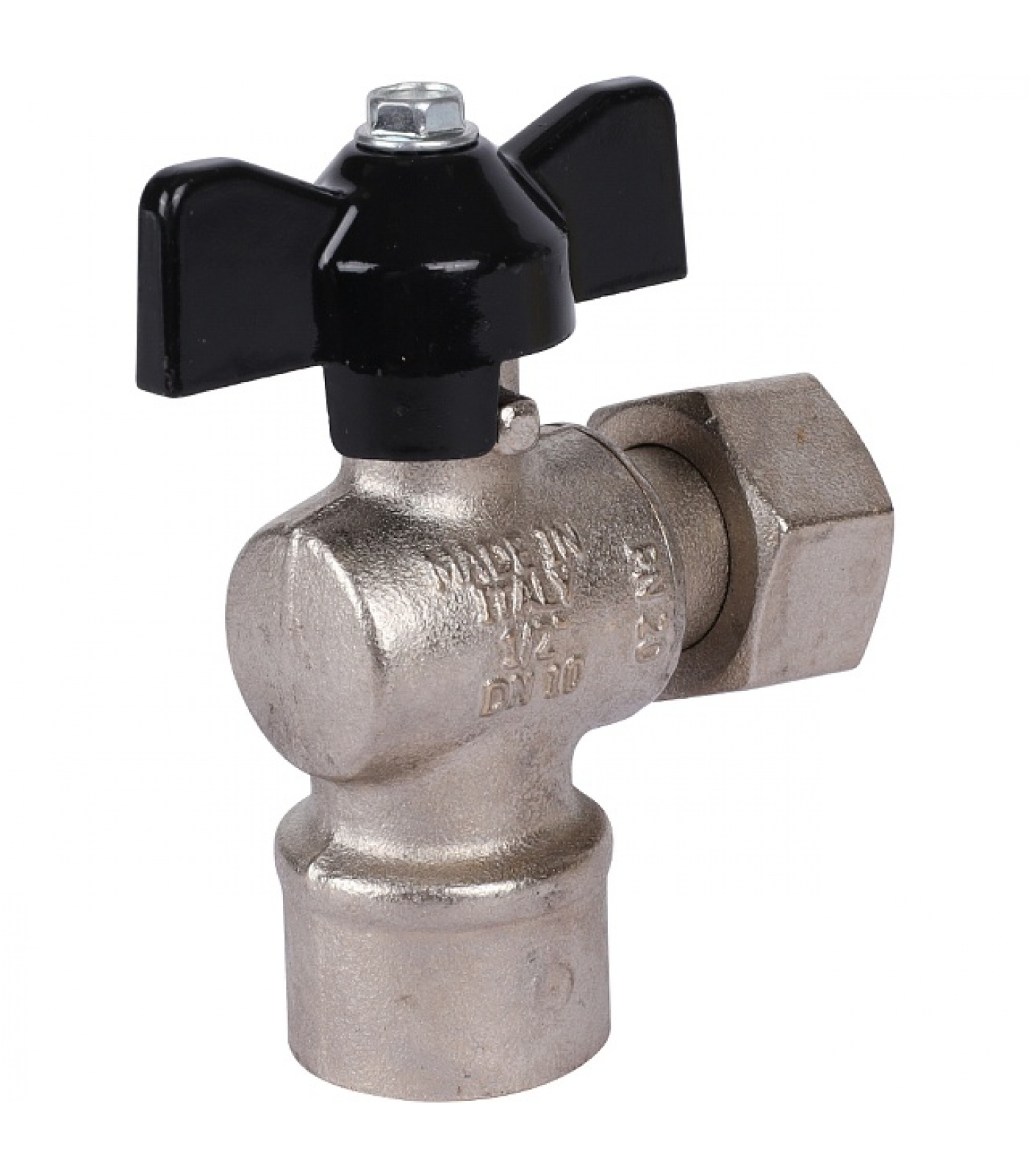Кран шаровой STOUT 1/2x1/2 с накидной гайкой угловой, ВР/накидная гайка, ручка бабочка