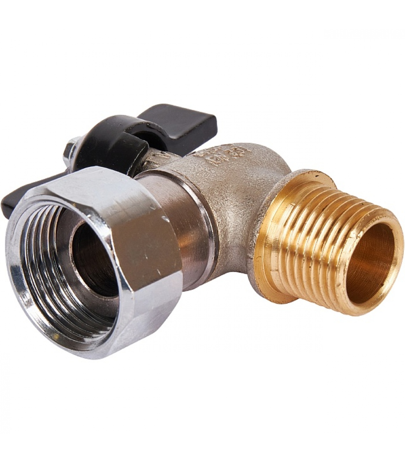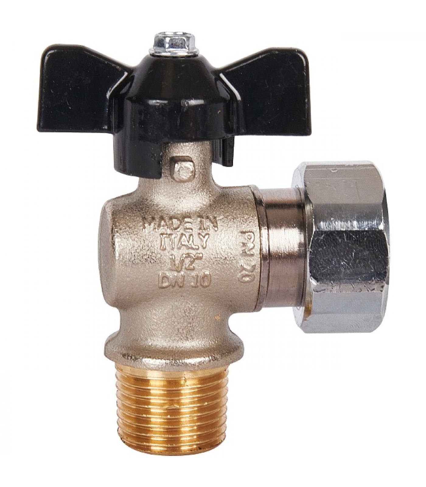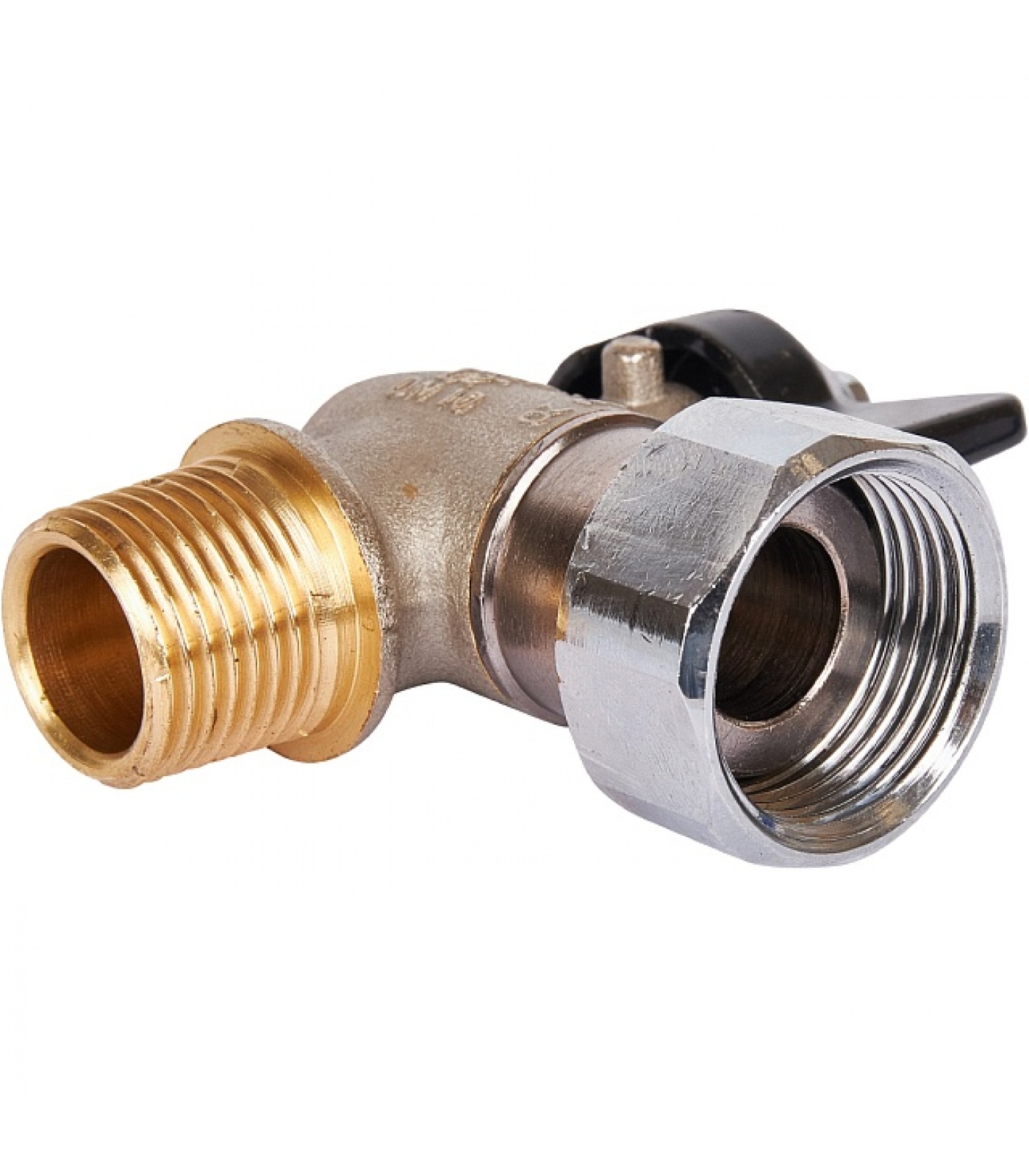 Кран шаровой STOUT 1/2x3/4 с накидной гайкой угловой, НР/накидная гайка, ручка бабочка