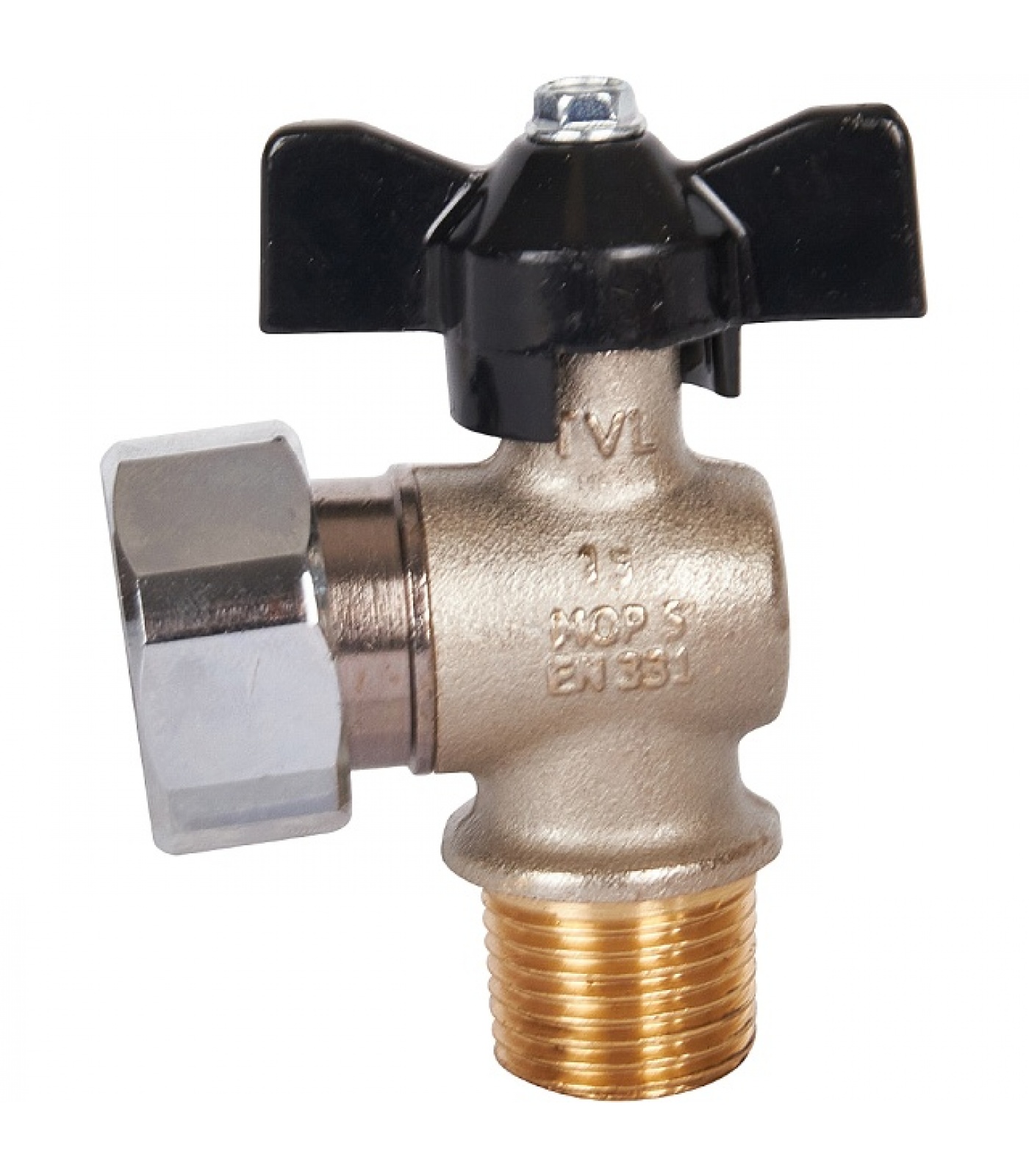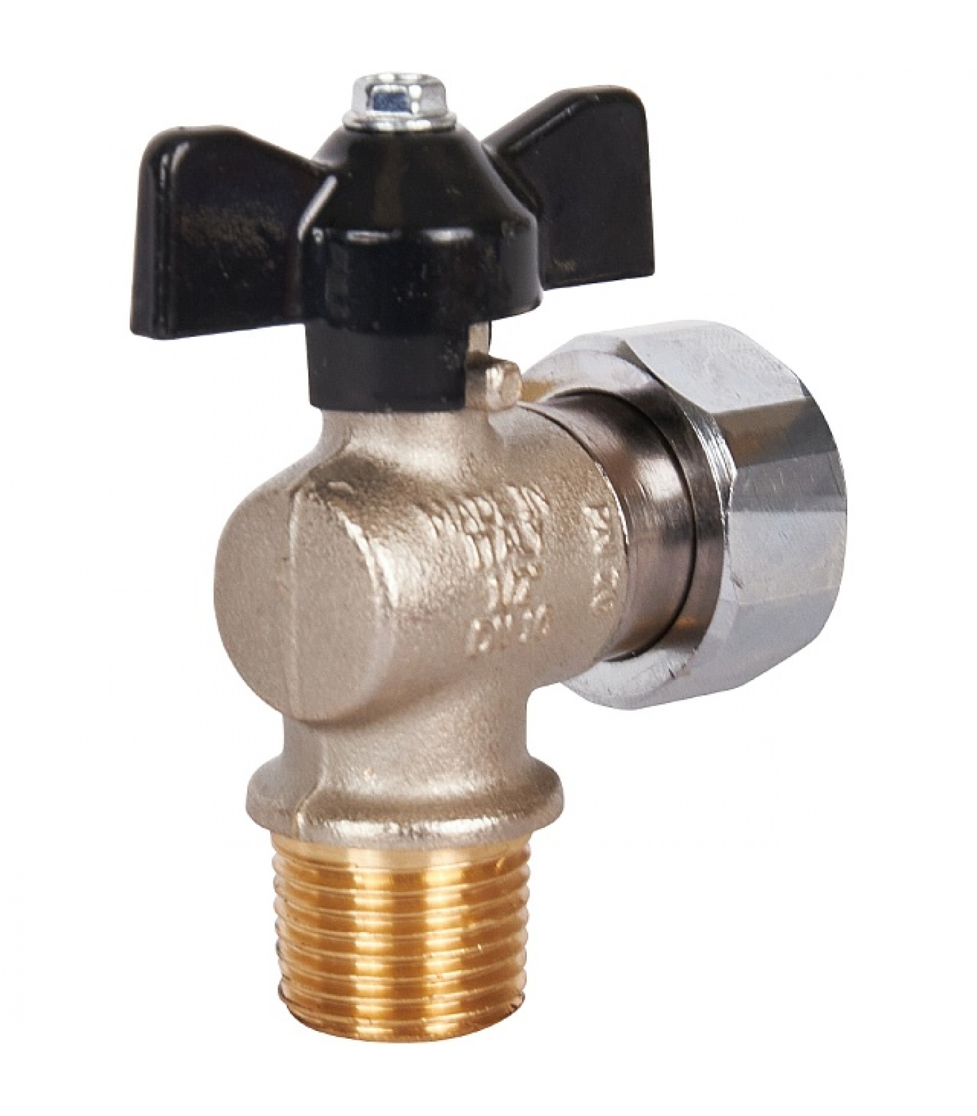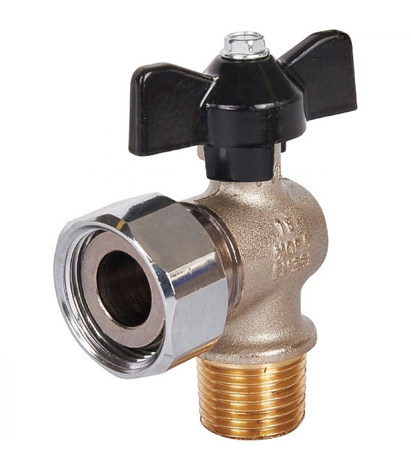 Кран шаровой STOUT 1/2x3/4 с накидной гайкой угловой, НР/накидная гайка, ручка бабочка