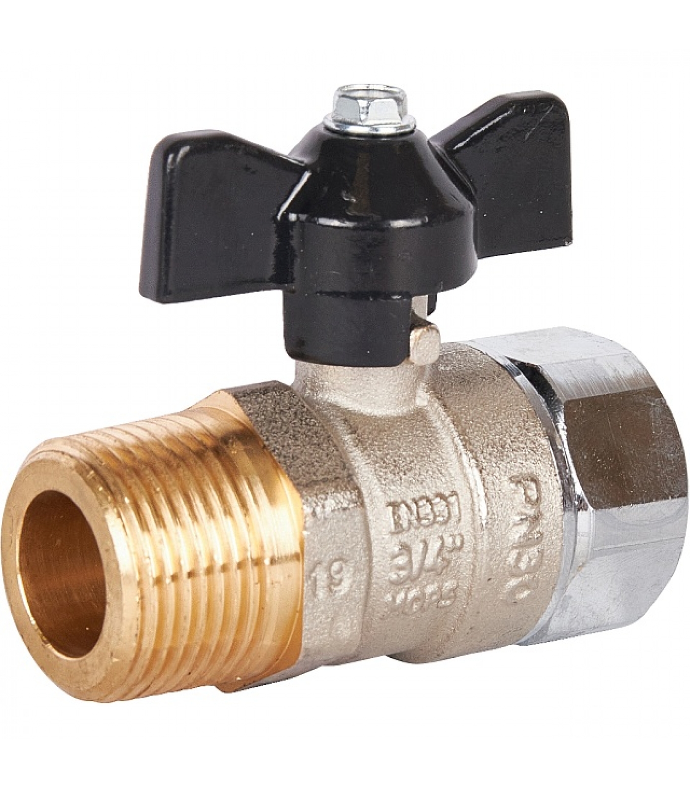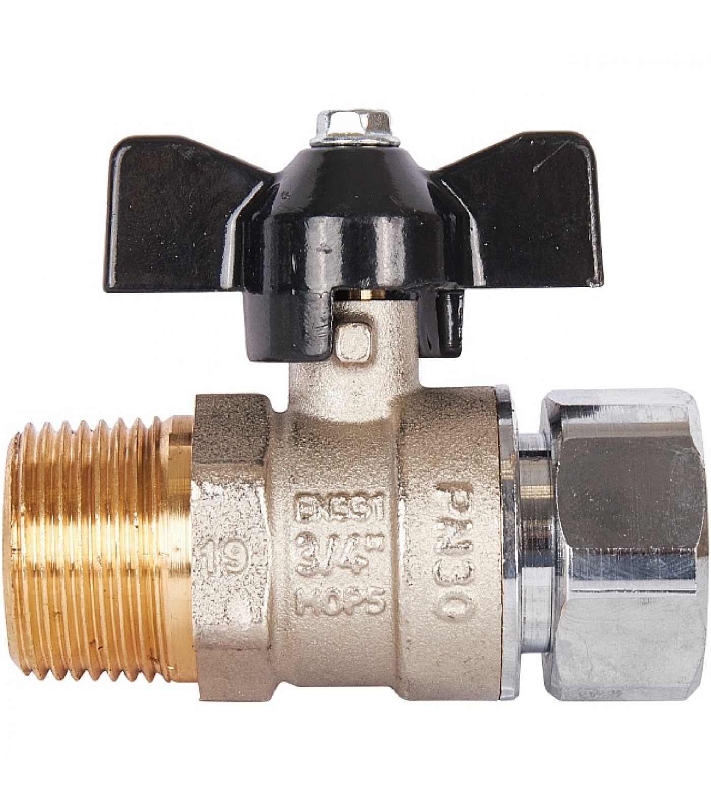 Кран шаровой STOUT 3/4x3/4 с накидной гайкой, НР/накидная гайка, ручка бабочка