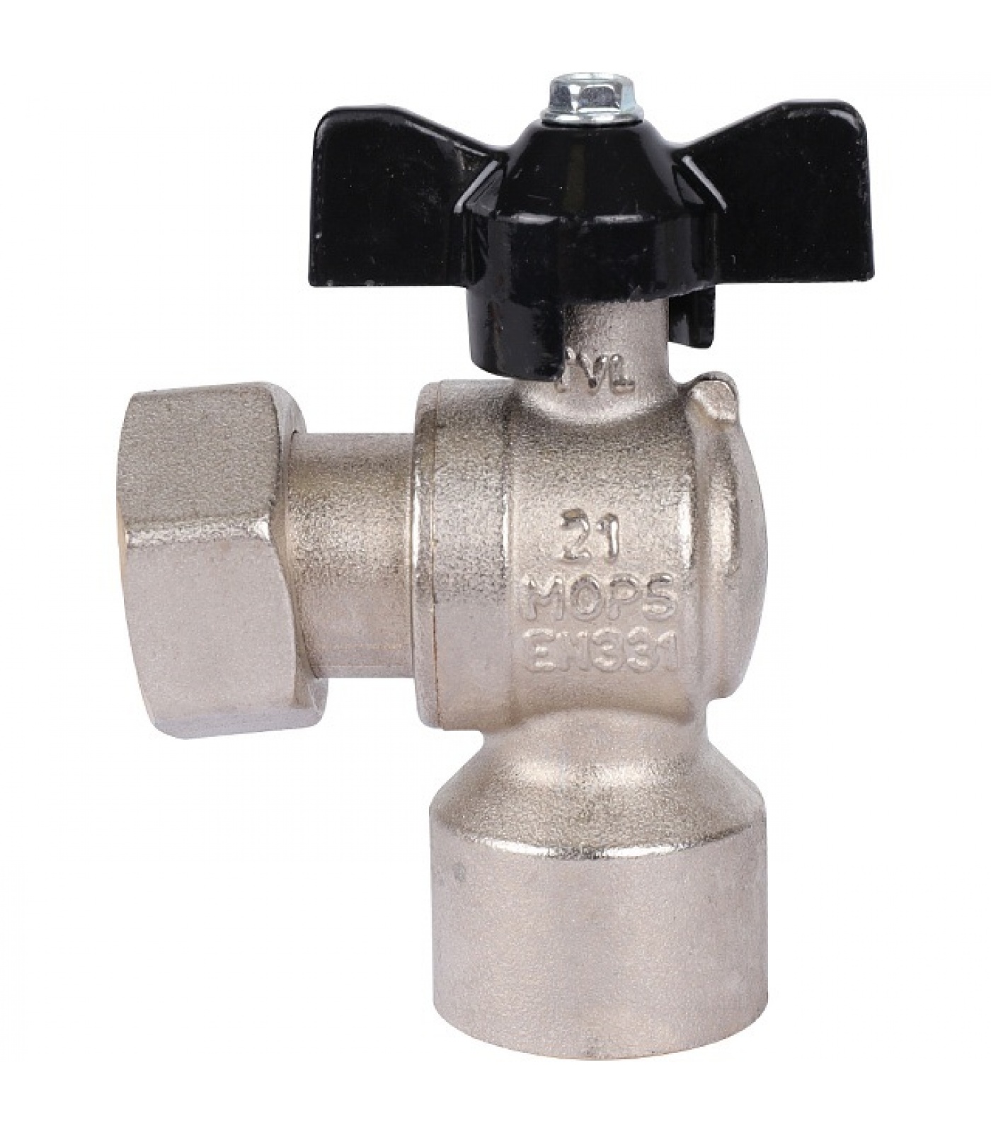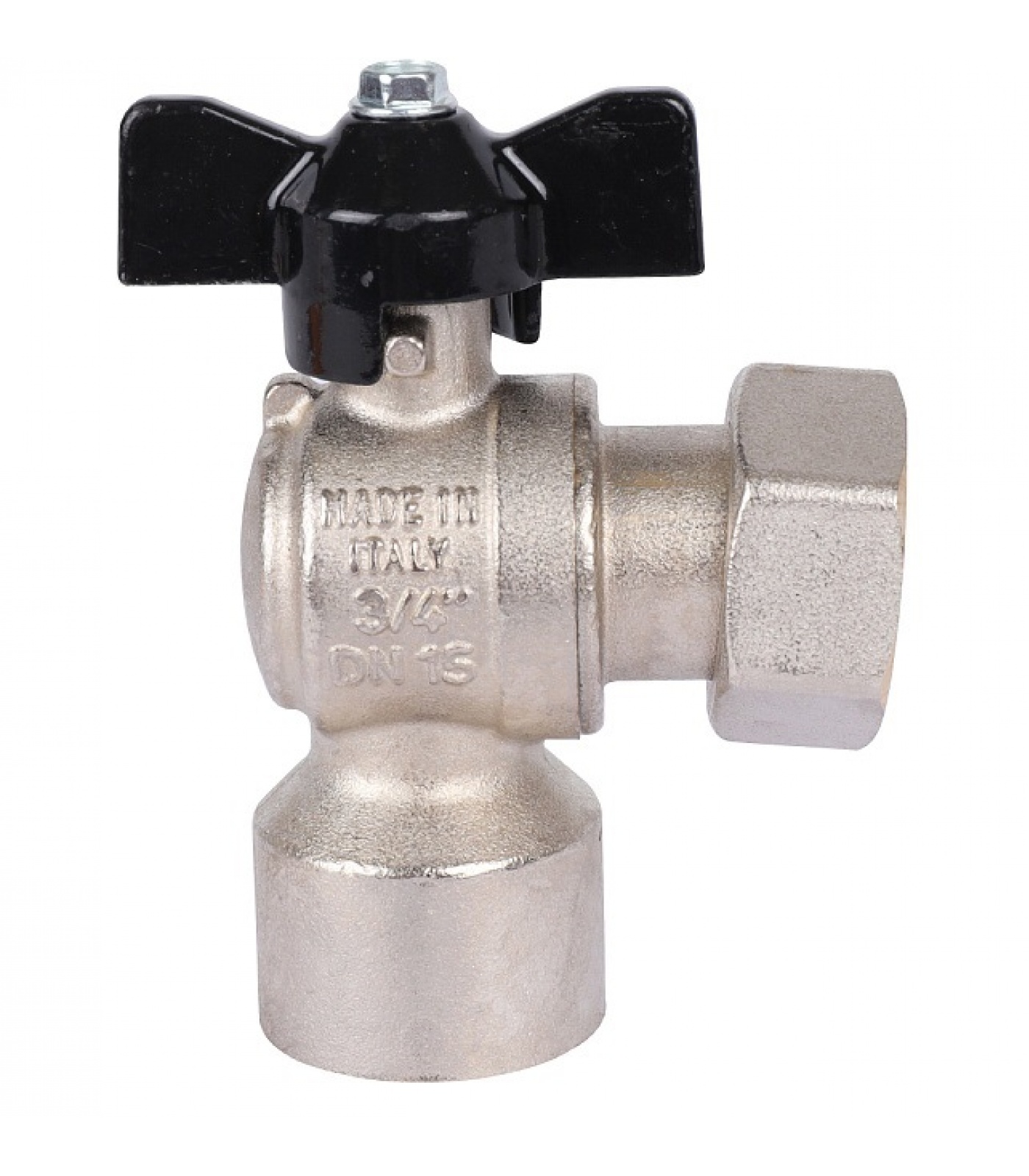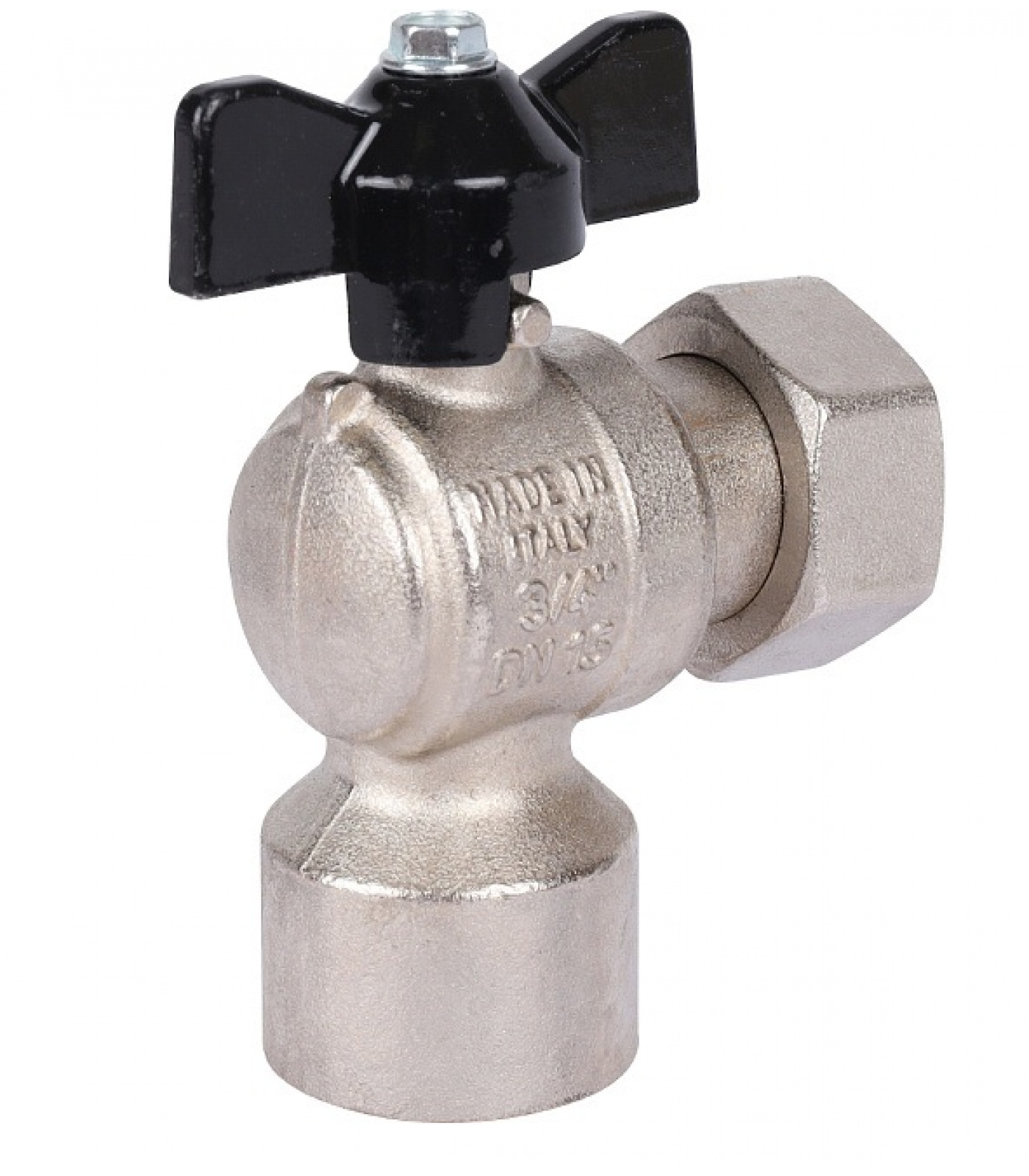 Кран шаровой STOUT 3/4x3/4 с накидной гайкой угловой, ВР/накидная гайка, ручка бабочка