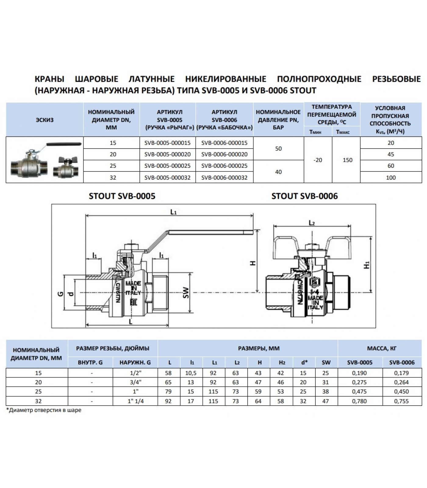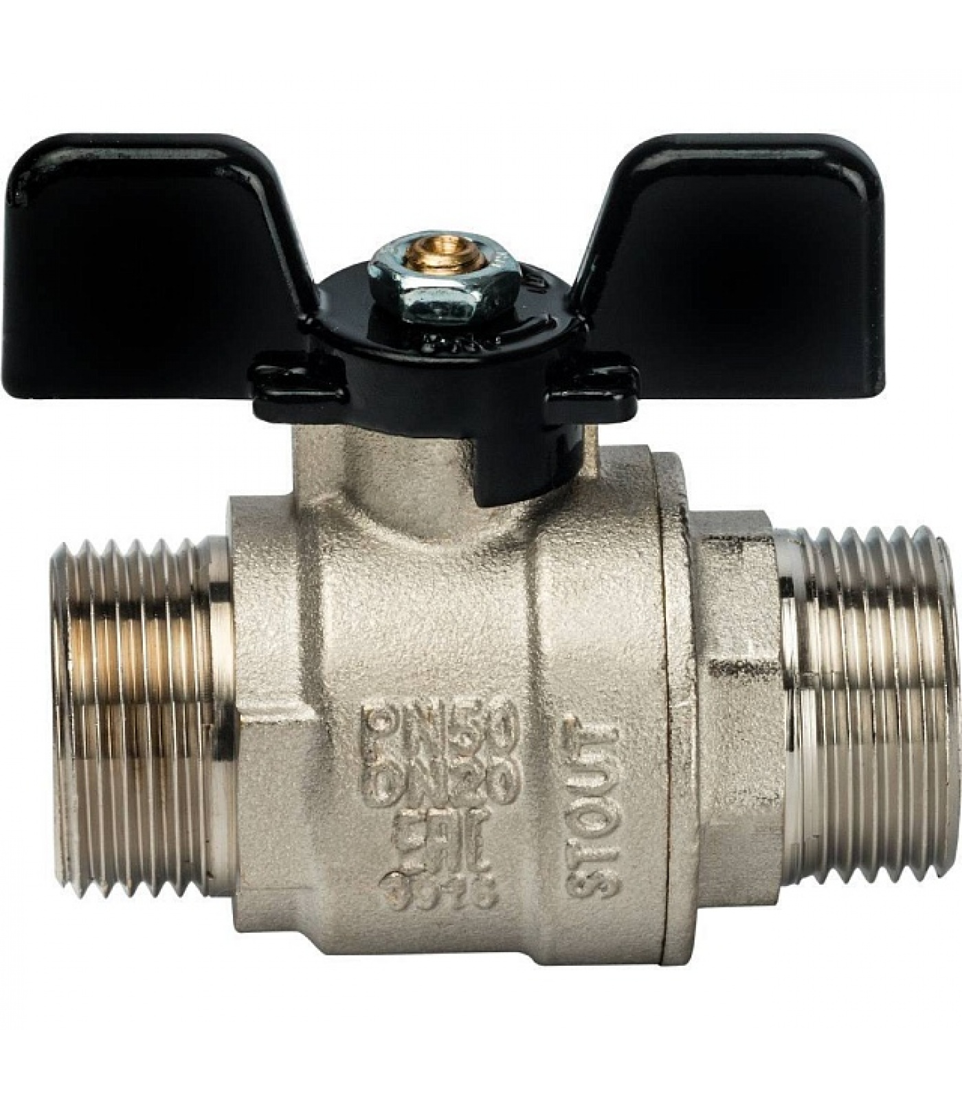 Кран шаровой STOUT полнопроходной, НР/НР, ручка бабочка 3/4
