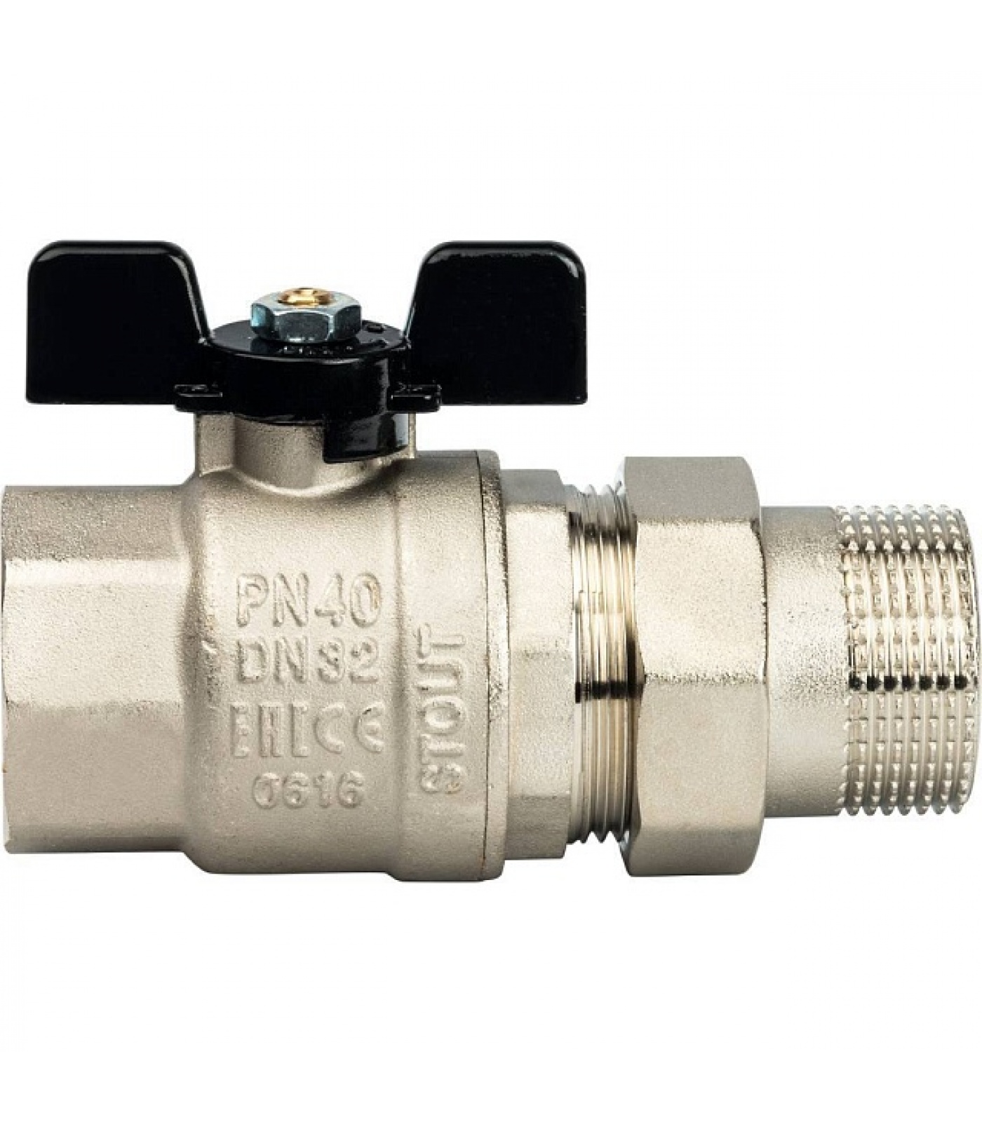 Кран шаровой STOUT полнопроходной, ВР/НР, ручка бабочка 1 1/4, американка