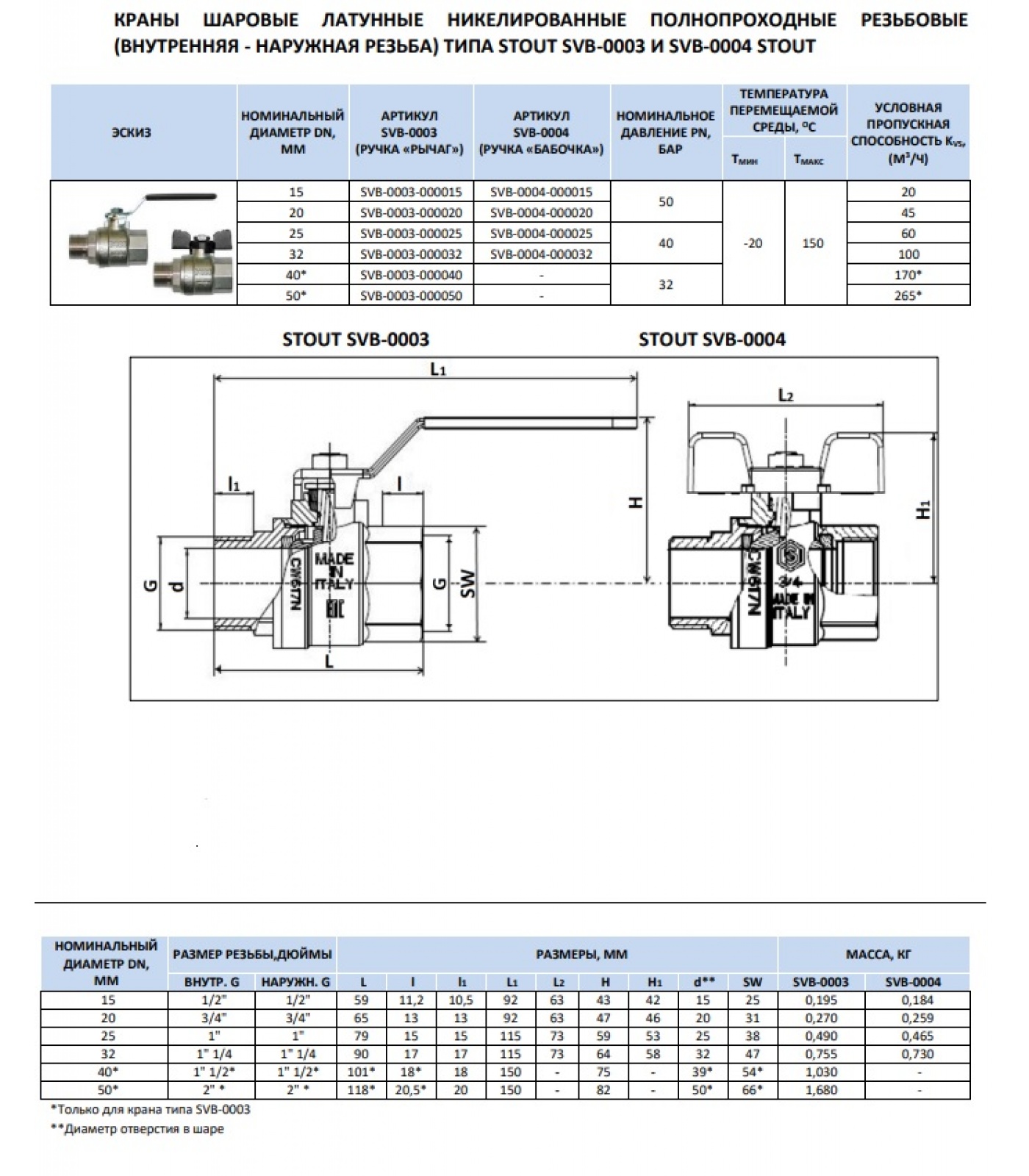 Кран шаровой STOUT полнопроходной, ВР/НР, ручка рычаг 1