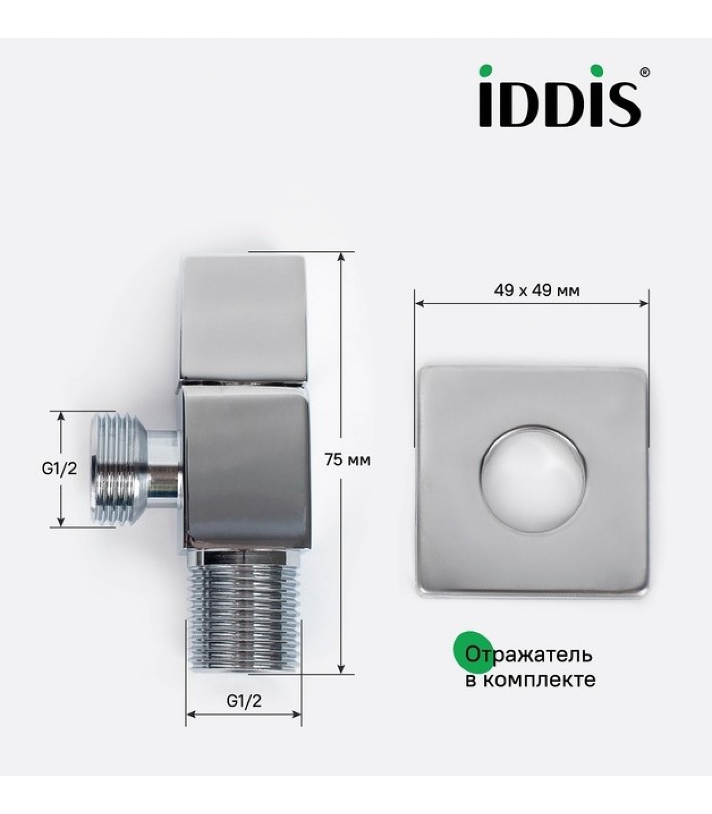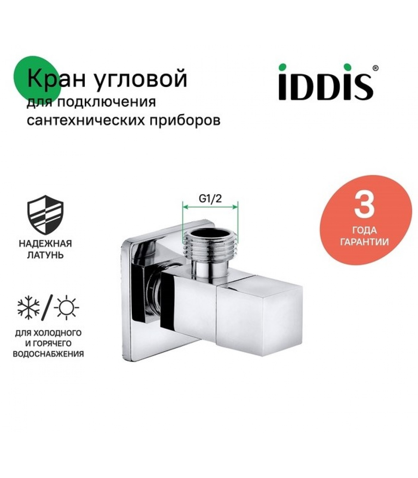 Кран шаровой угловой 1/2"НР/НР Iddis Optima Home, квадрат, для подключения сантехприборов