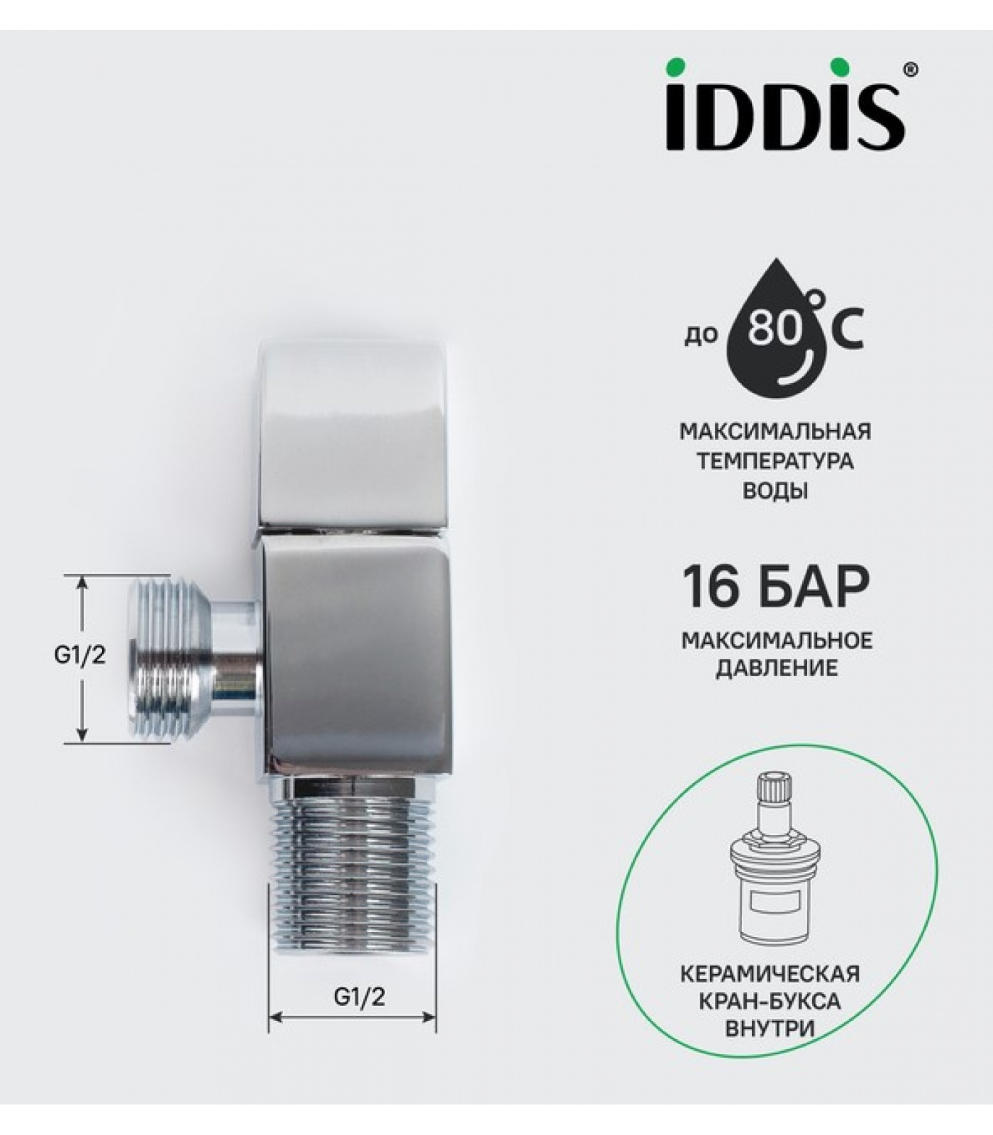IDDIS Optima Home 910B0Z3C2CZ Угловой кран для подключения сантехприборов выполнен из надежной латуни и имеет кран-буксу внутри, которая не закисает и подвижна даже при редком использовании, обеспечивая плавность и легкость поворота ручки.