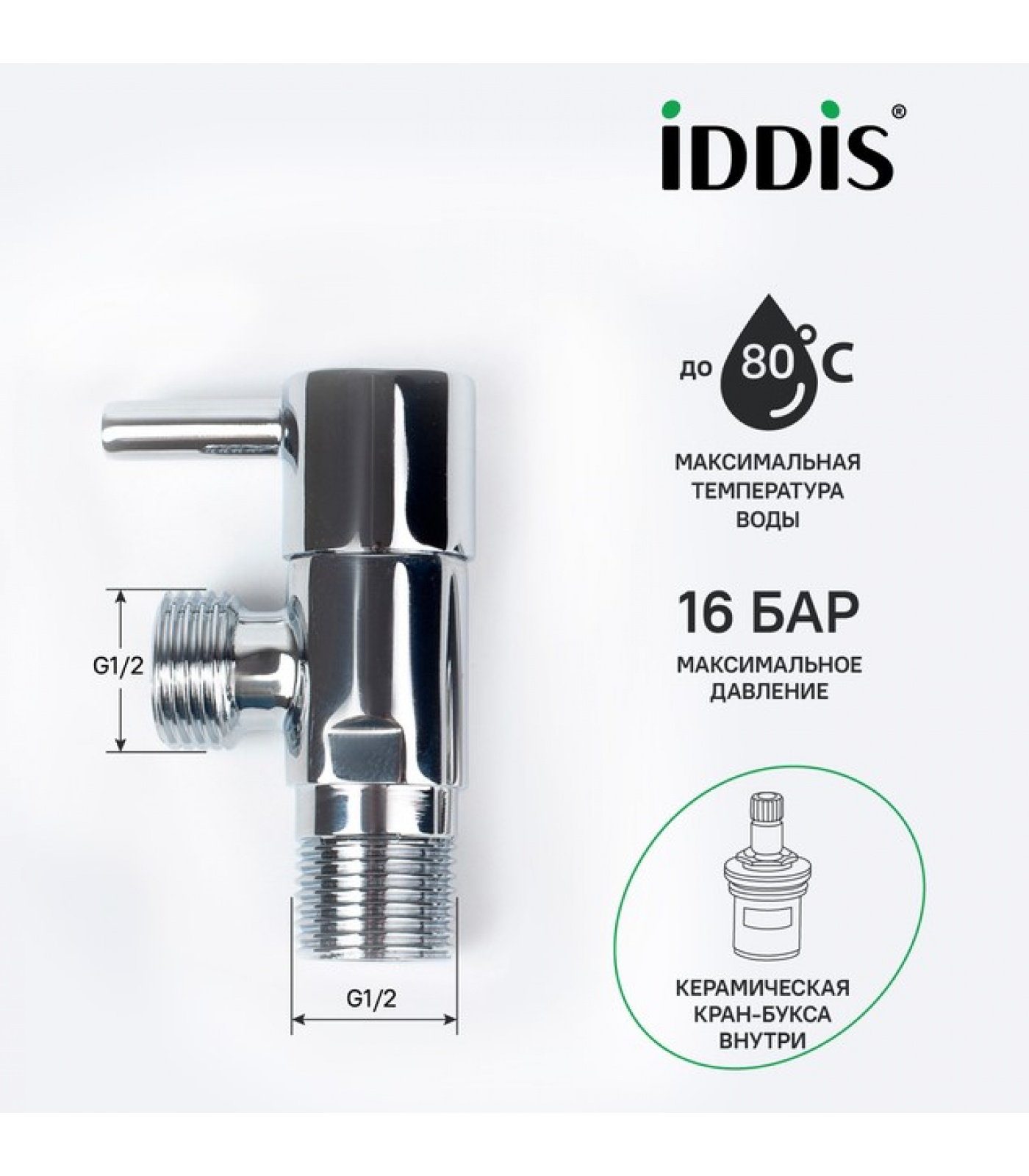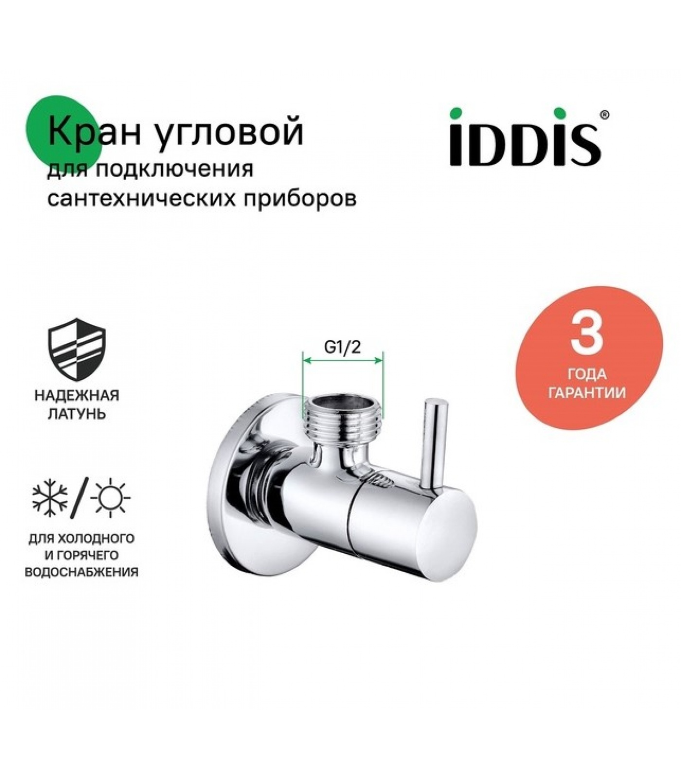 IDDIS Optima Home 910B0Z4C2CZ Угловой кран для подключения сантехприборов выполнен из надежной латуни и имеет кран-буксу внутри, которая не закисает и подвижна даже при редком использовании, обеспечивая плавность и легкость поворота ручки.