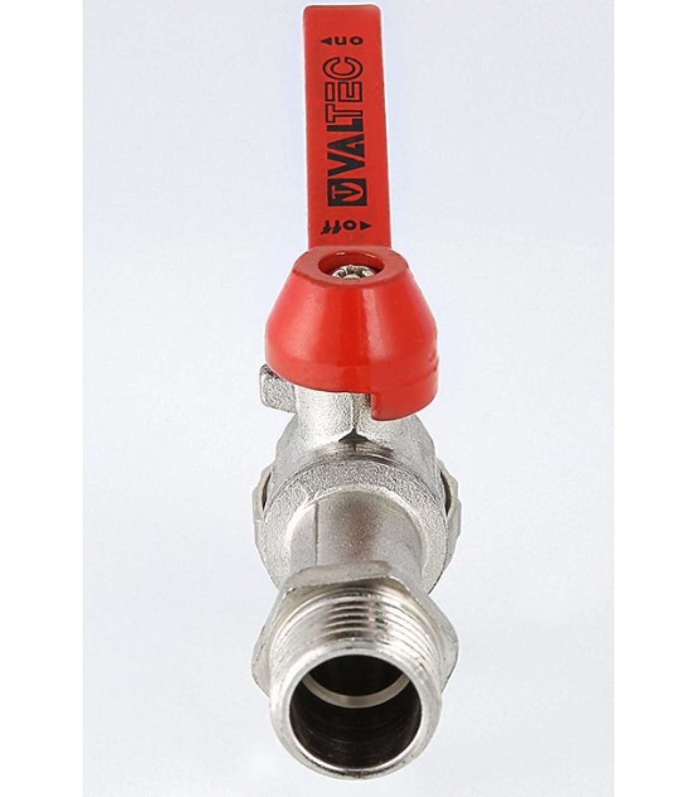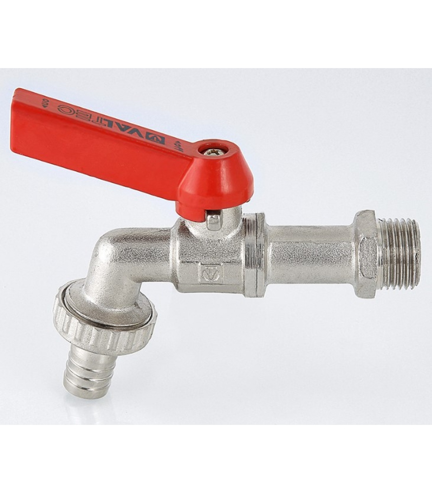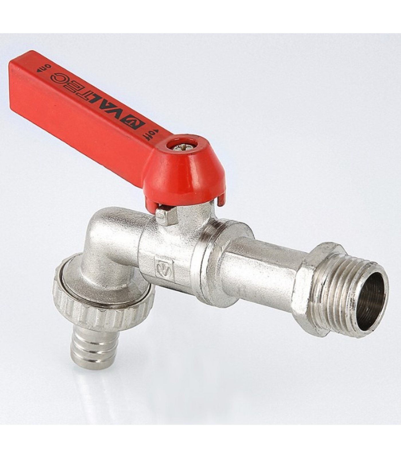 Кран шаровой водоразборный 1/2" Valtec сливной с латунным штуцером, рукоятка красная