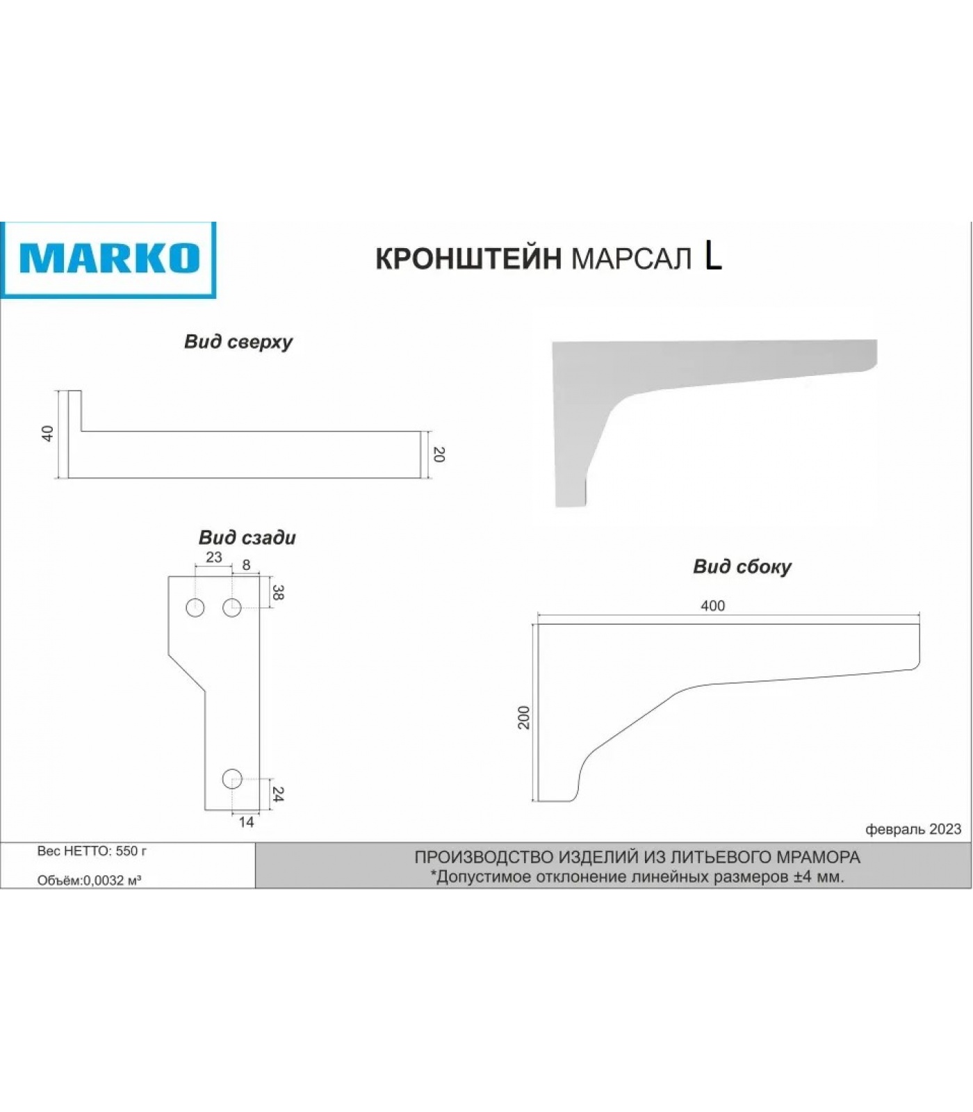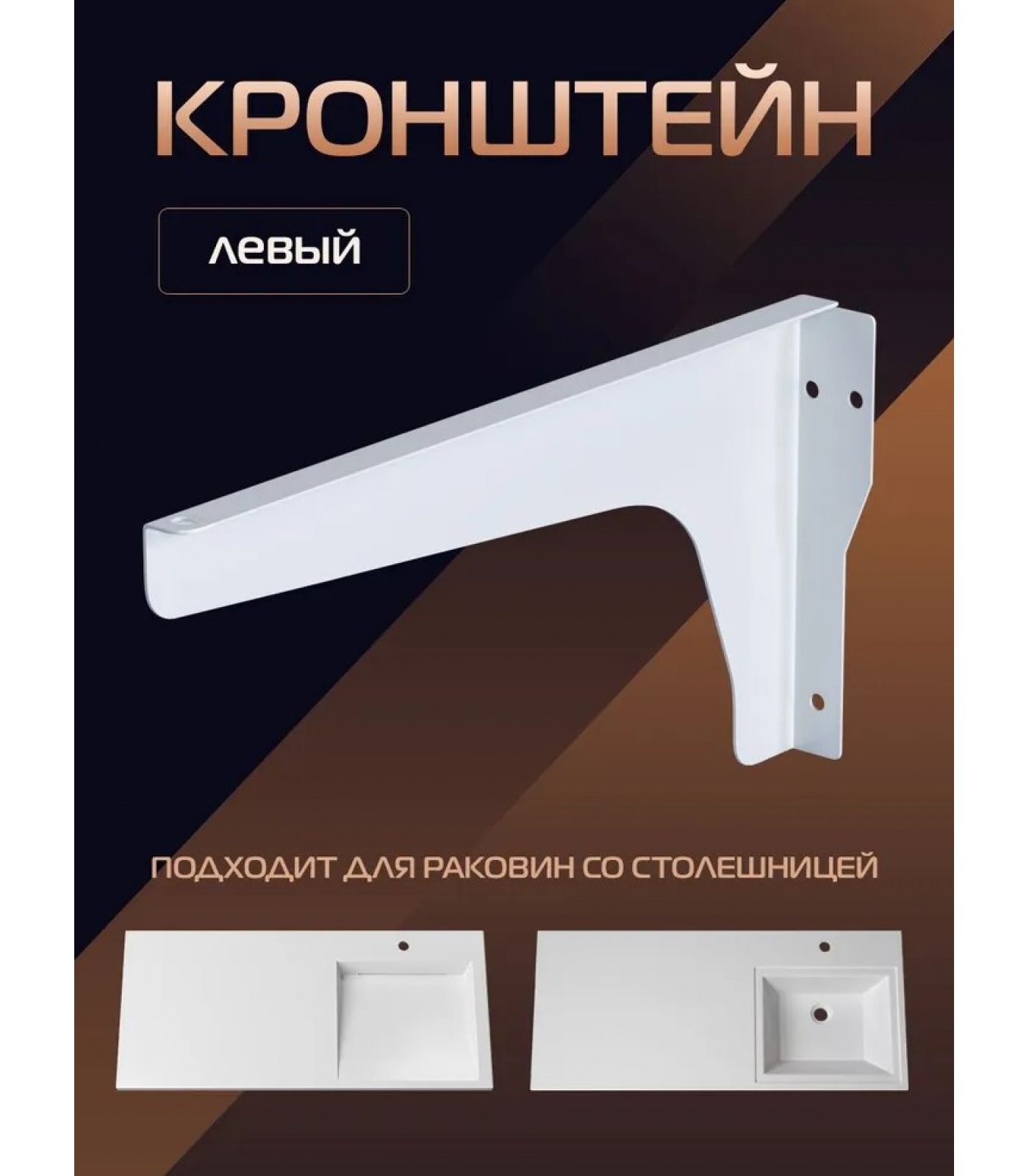 Кронштейн левый предназначен для раковины с крылом над стиральной машиной Marko Марсал (арт. 1567358004) с чашей с правой стороны.