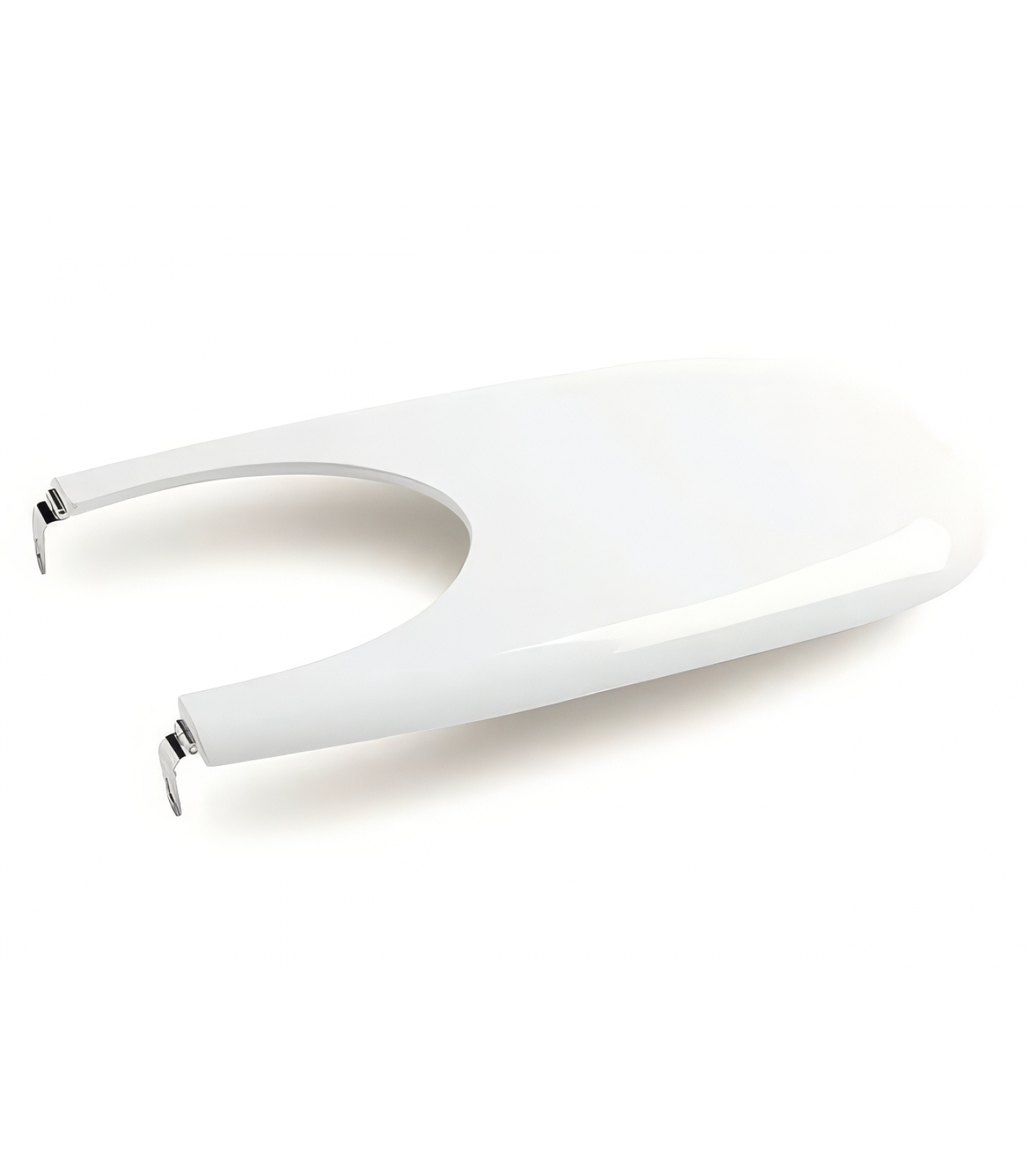 Крышка оснащена надежными стальными креплениями для монтажа к биде. Одной из отличительных особенностей аксессуара является глянцевая поверхность благодаря специальному лаковому покрытию. Крышка выполнена из пластика, отличающегося своей жесткостью и прочностью конструкции, что гарантирует долгий срок службы аксессуара. Приспособление просто необходимо для поддержания чистоты и гигиены, а классический белый цвет впишется в интерьер любой ванной или туалетной комнаты.