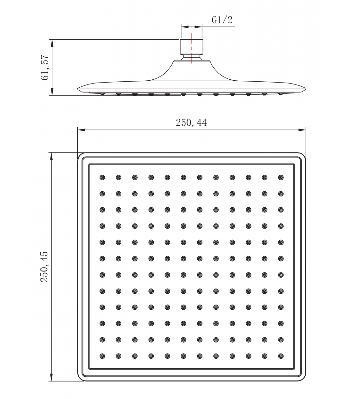 Верхний душ LEMARK LM8036C, 1 режим, 250х250 мм