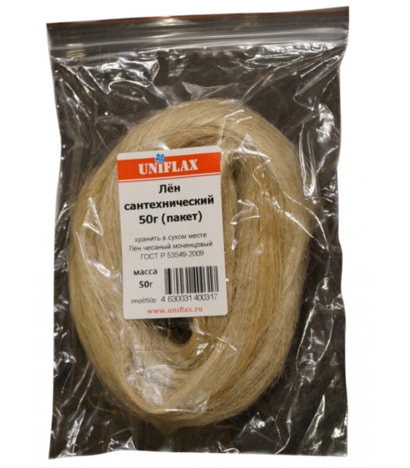 Лен сантехнический Uniflax чесаный моченцовый 50 грамм, пакет