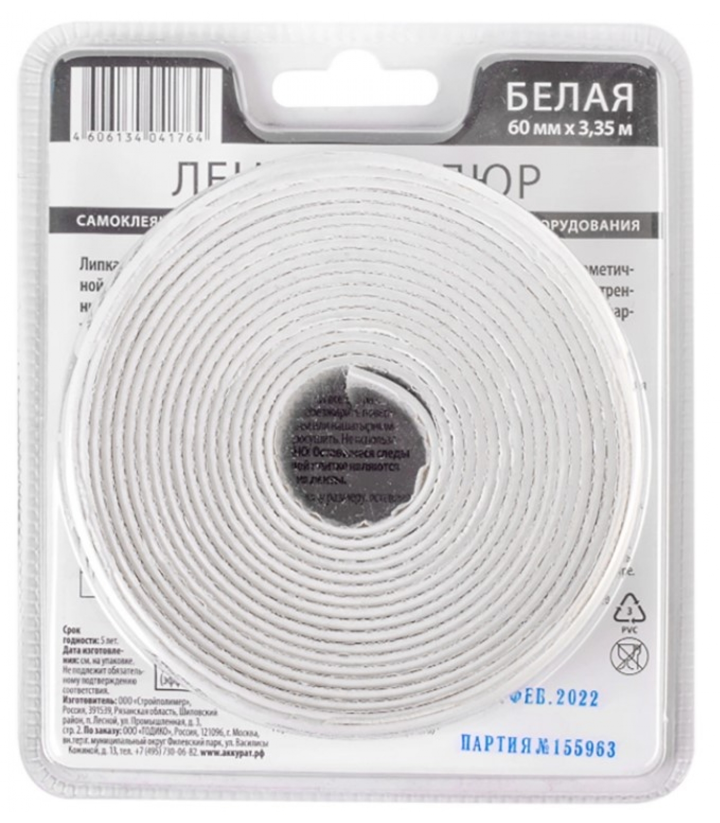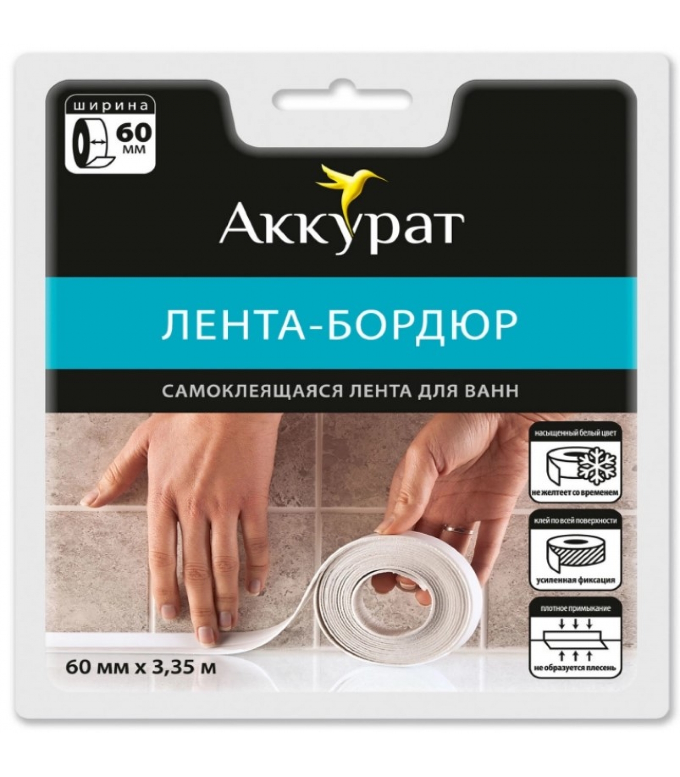Лента бордюрная самоклеящаяся Аккурат 60мм*3,35м белая