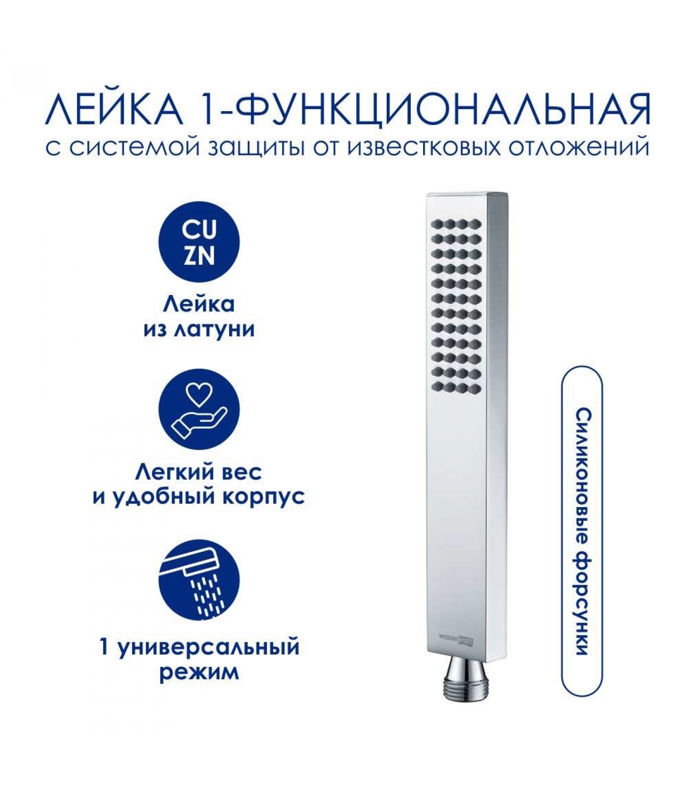 Аксессуары для душа Лейка 1-функциональная с системой защиты от известковых отложений латунь, хромоникелевое покрытие 2 года.