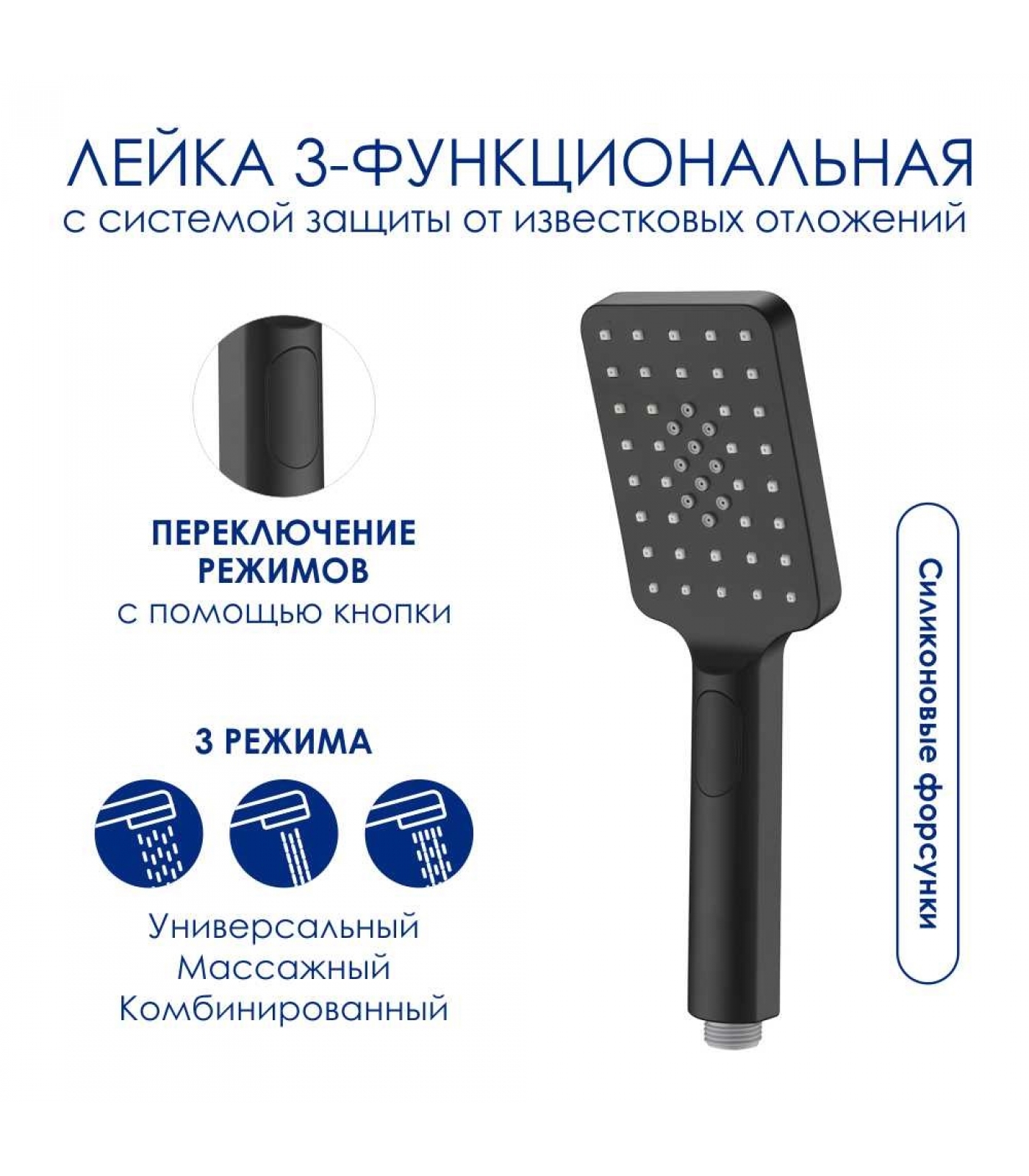 Серия Elbe 7400 Лейка 3-функциональная с системой защиты от известковых отложений ABS-пластик, Покрытие черный Soft-touch 2 года.