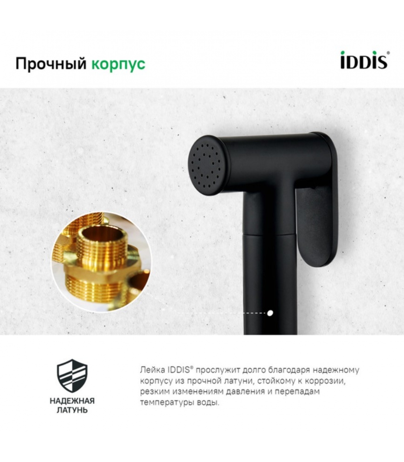 Лейка IDDIS® прослужит долго благодаря надежному корпусу из прочной латуни, стойкому к коррозии, резким изменениям давления и перепадам температуры воды.