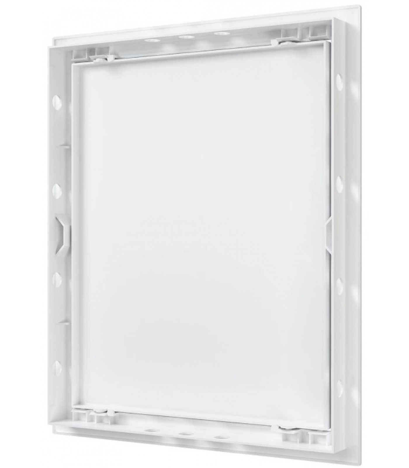 Пластиковые ревизионные люки с фланцем Л предназначены для установки в стену или потолок. Размер отверстия должен соответствовать размеру фланца люка. Открываются легким нажатием на углы дверцы. Для открытия люка необходимо одновременно нажать на уголки дверцы (на рифленые поверхности).