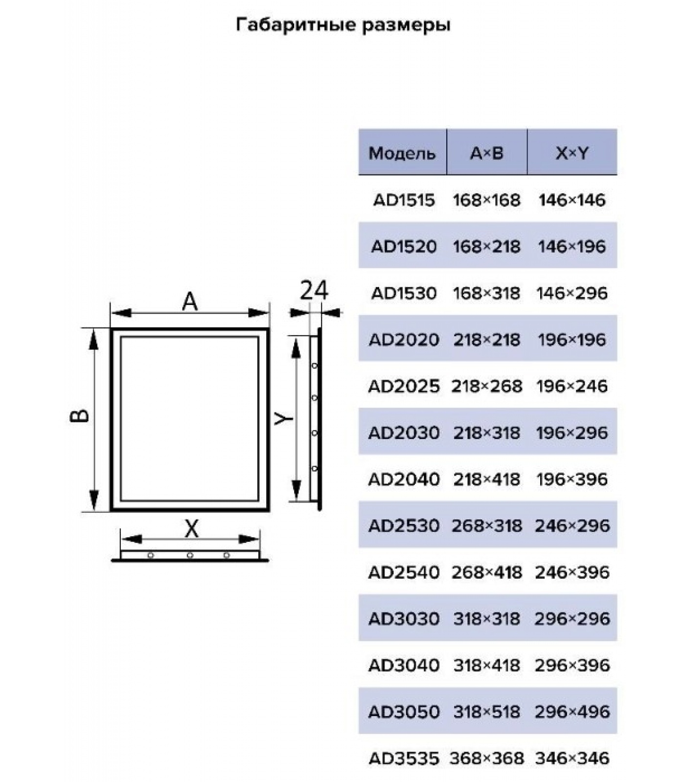 Люк ревизионный AD фланец 146х196 нажимной 168х218 пластик AURAMAX